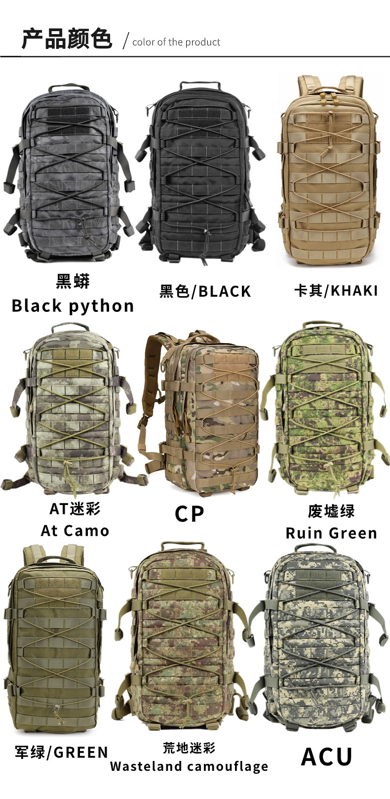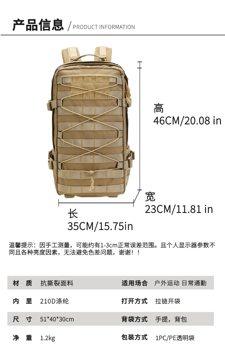 내마모성 1000D 스포츠 백팩 다기능 전술 야외 등산 배낭 캠핑 하이킹 통기성 경량화