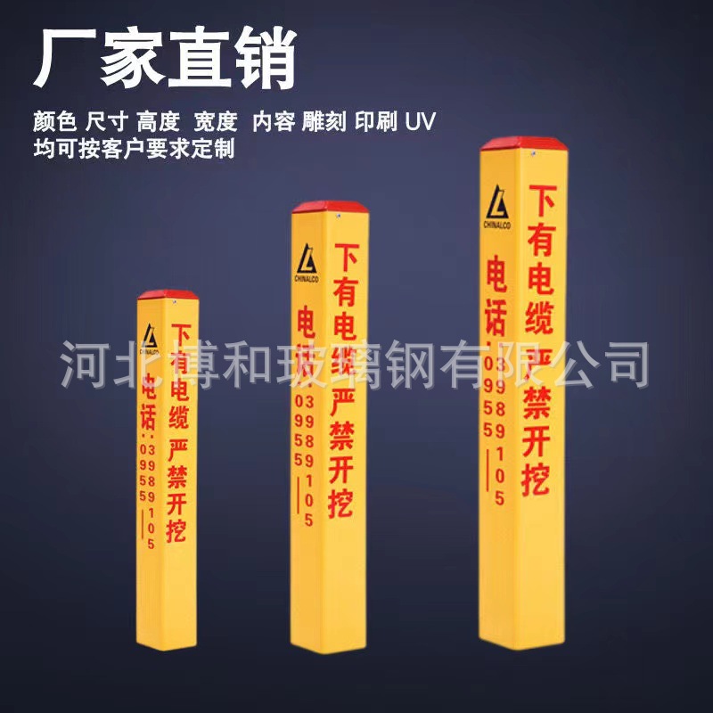 新款印刷标志桩 玻璃钢地埋警示桩铁路标识桩 电缆管道标志桩厂家