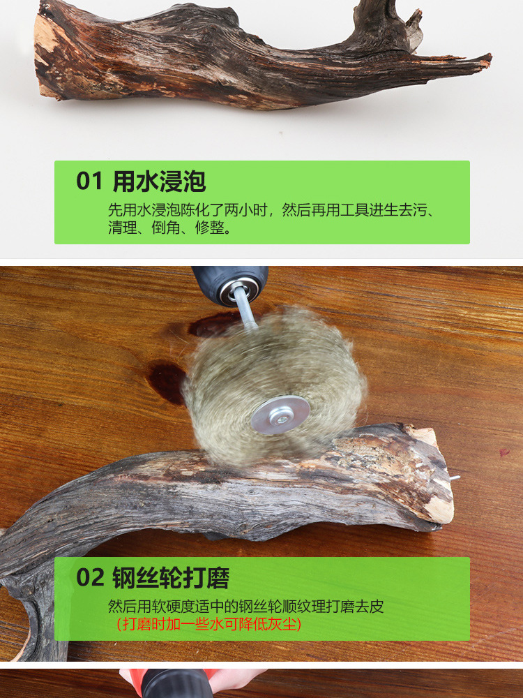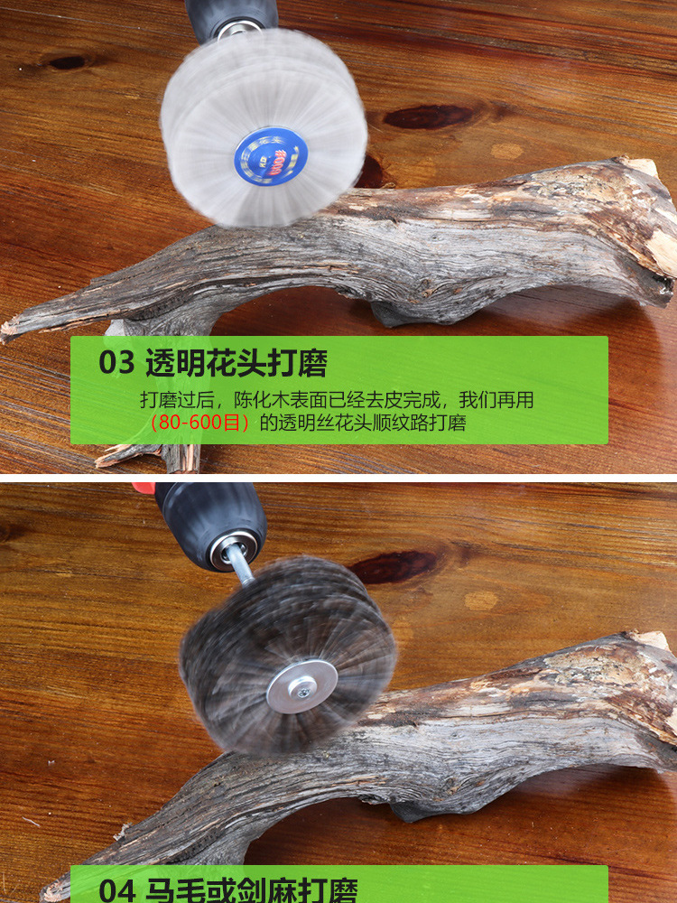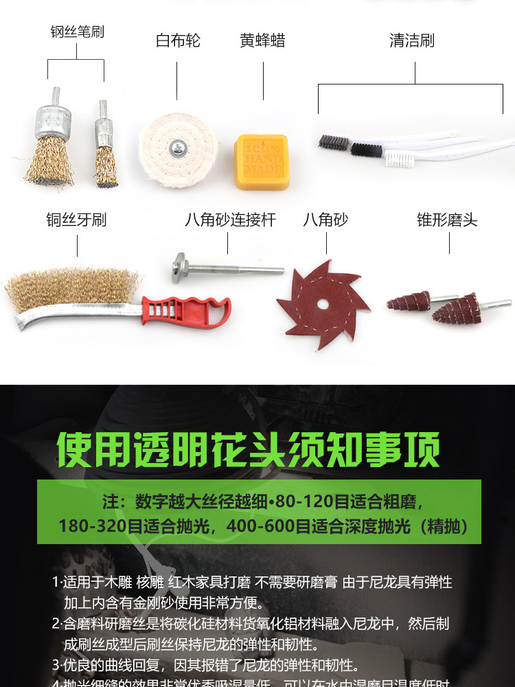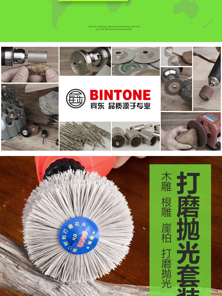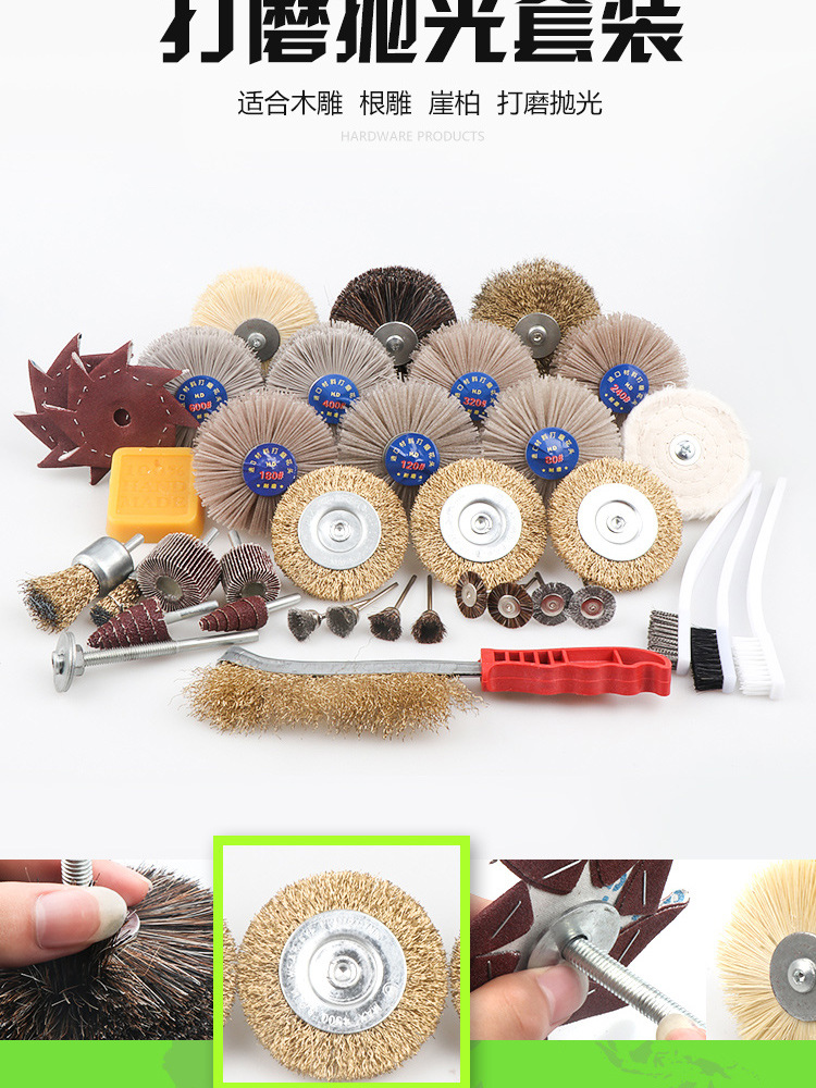 Bindong 전기 Cypress 뿌리 조각 연삭 도구 세트 나무 조각 연삭 연삭 꽃 머리 나무 뿌리 연삭 연마 강철 와이어 브러시 헤드