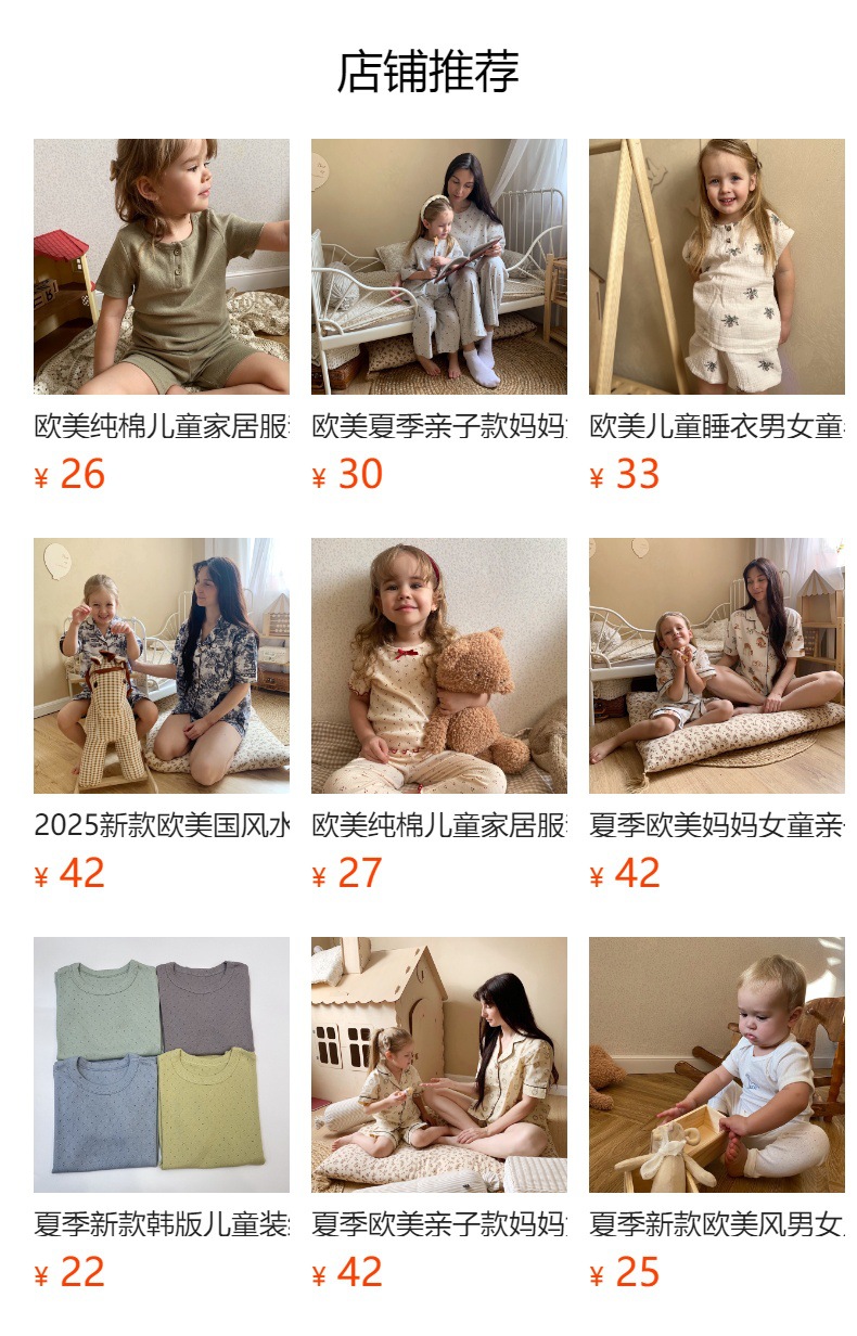 한국 스타일 아동 잠옷 유아용 분리형 순면 세트 여름 남아용 반팔 A급 아동복 여아용 홈웨어스토어 가기