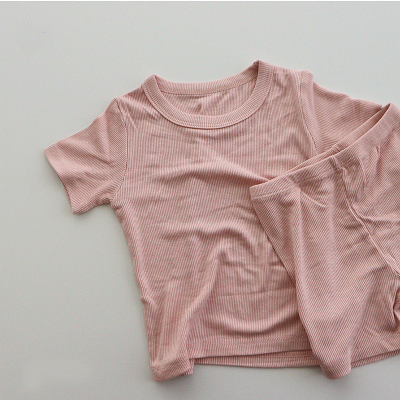 한국 스타일 아동 잠옷 유아용 분리형 순면 세트 여름 남아용 반팔 A급 아동복 여아용 홈웨어