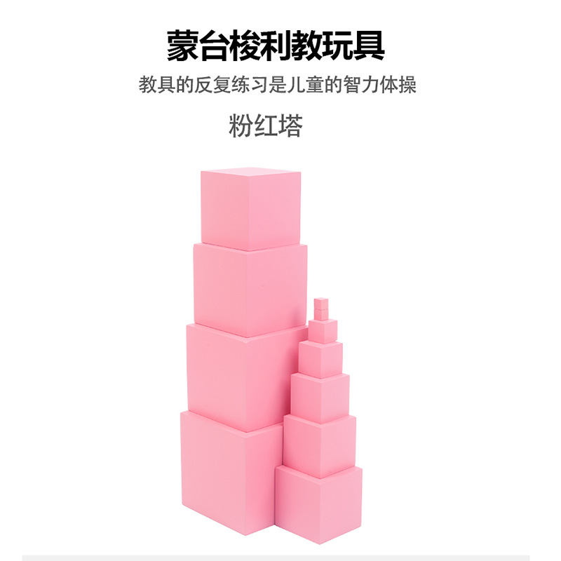 몬테소리 몬테소리 감각 교육 보조 어린이 터치 장난감 국제판 너도밤 나무 핑크 타워 유치원 조기 교육