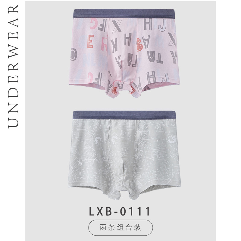 황 십대 속옷 Zhongda 부티크 박스 순면 남아 복서 속옷 학생 복서 바지 두 쌍