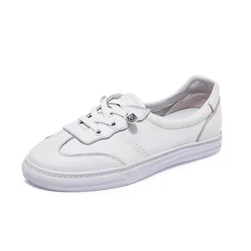첫 번째 레이어 소가죽 여성 신발 봄과 여름 2023 새로운 캐주얼 스포츠 흰색 신발 여성용 얕은 입 플랫 가죽 여성용 싱글 신발스토어 가기