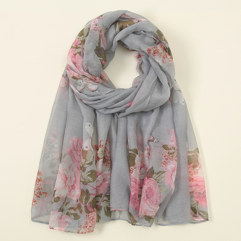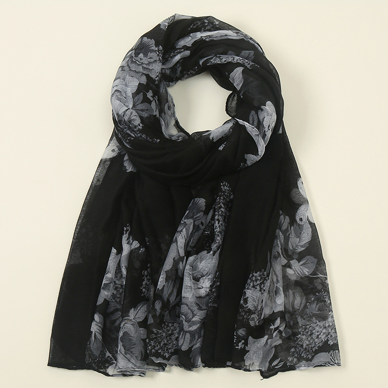 발리 원사 새로운 스타일 여성용 스카프 인쇄 꽃 긴 스카프 이슬람 발가락 머리 스카프 얇은 여름 스카프 실크 스카프스토어 가기