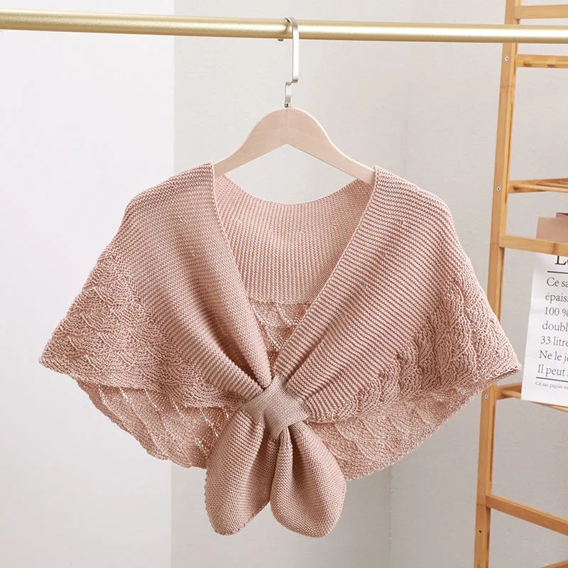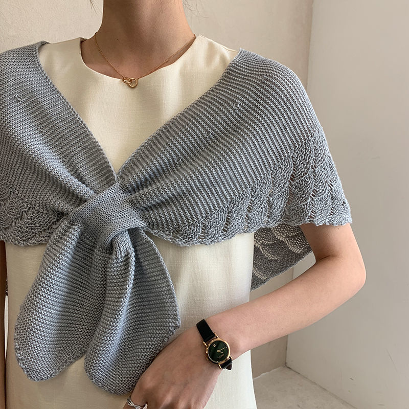봄과 여름 중공 크로 셰 뜨개질 웨스턴 스타일 니트 조끼 에어컨 룸 어깨 슬리브 거짓 칼라 매듭 울 외부 숄