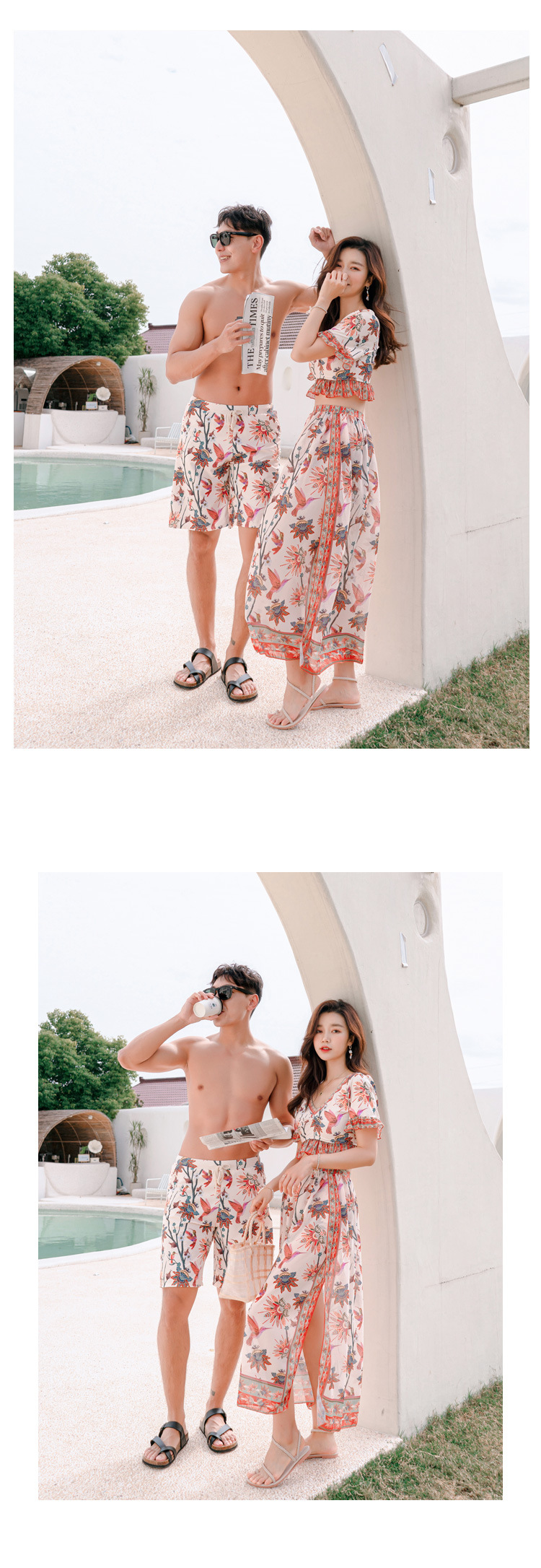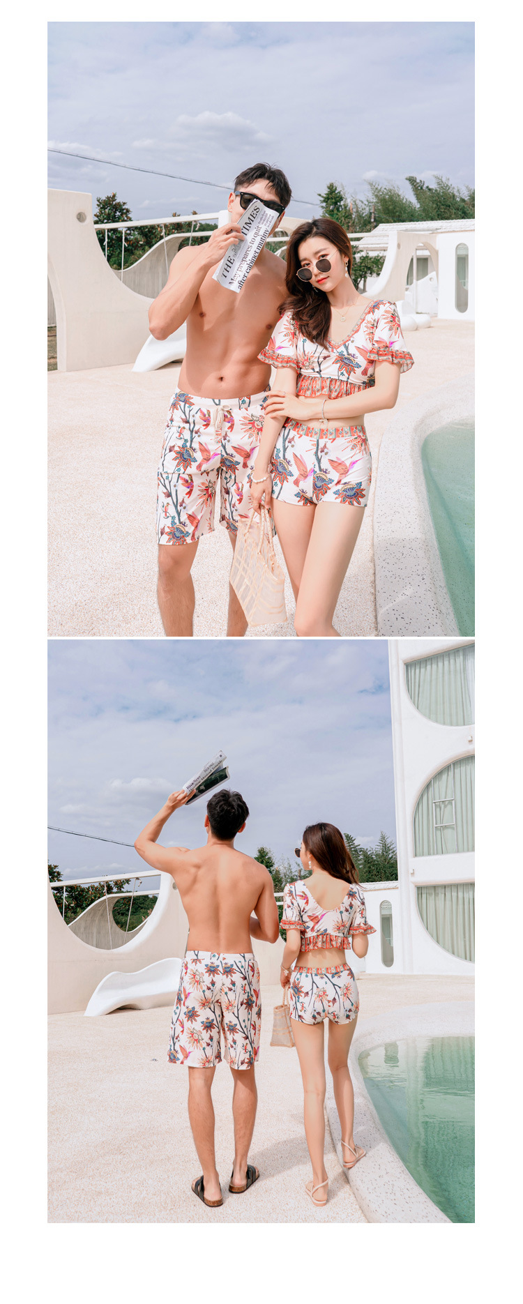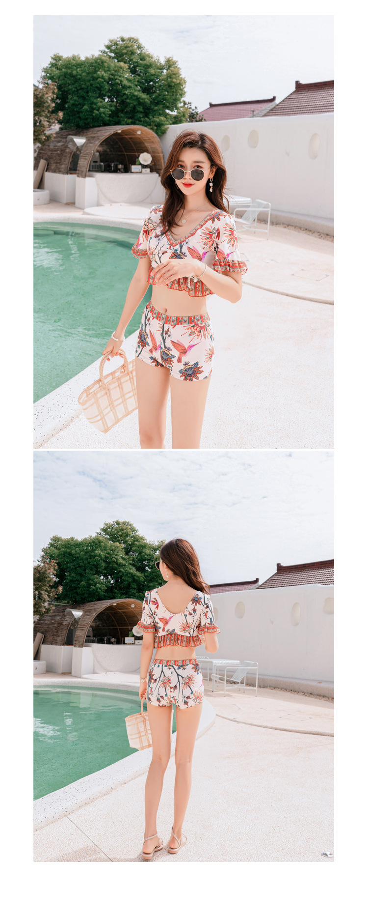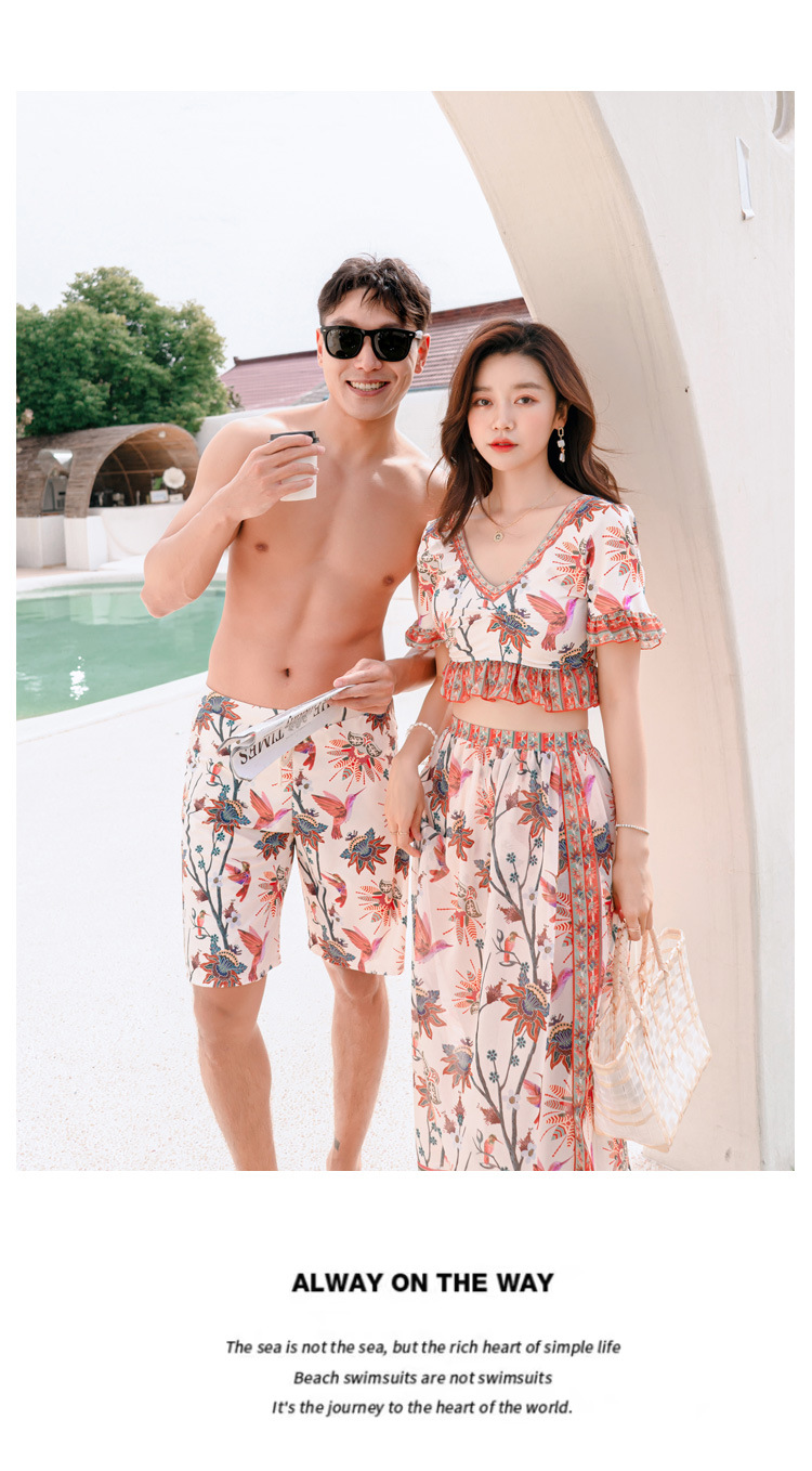 수영복 여자의 비키니 쓰리피스 세트 여자의 커플 남자의 비치 바지 배꼽 덮는 슬리밍 보수적 인 섹시 한국 온천 스플릿스토어 가기