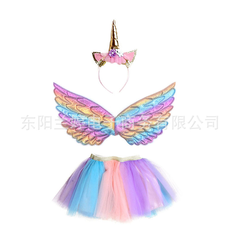 여자 치마 공주 투투 스커트 유니콘 머리 단추 일 날개 세트 무도회 성능 원피스스토어 가기