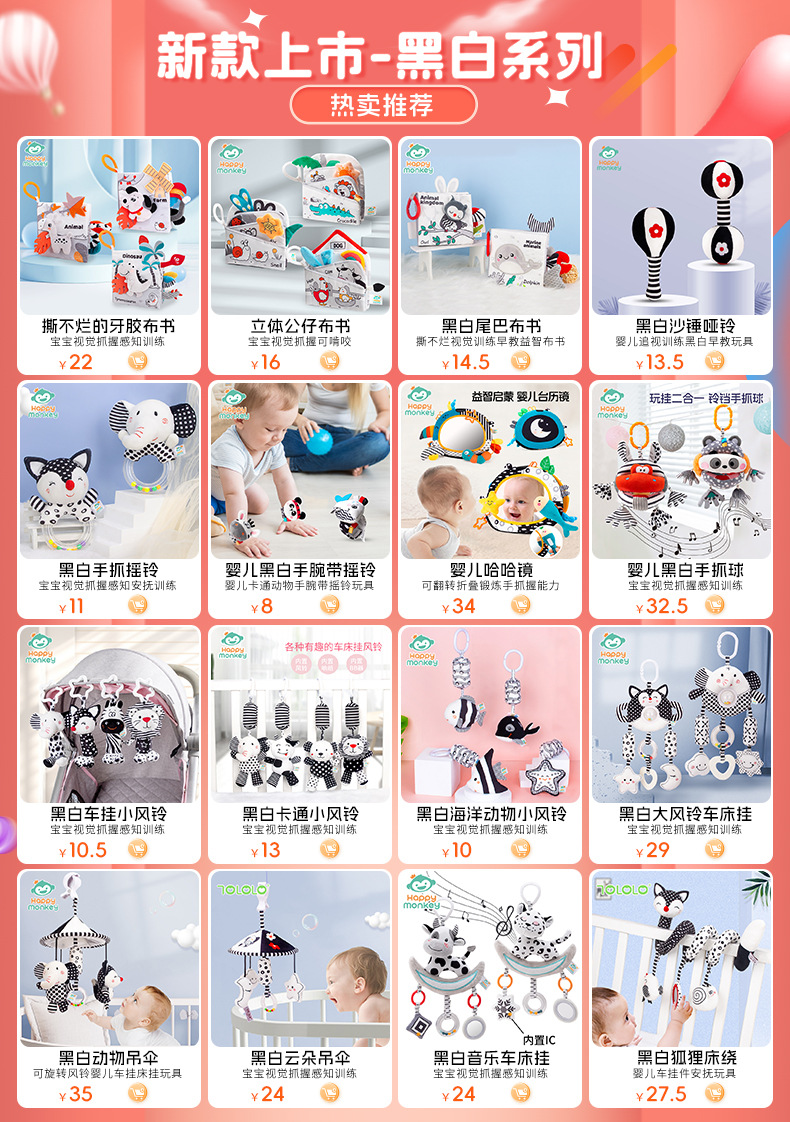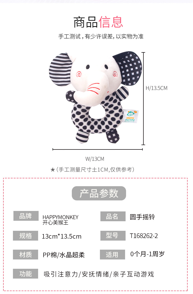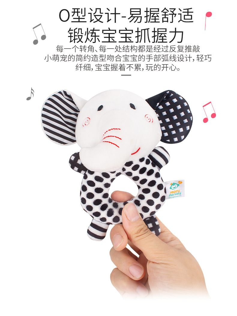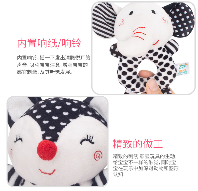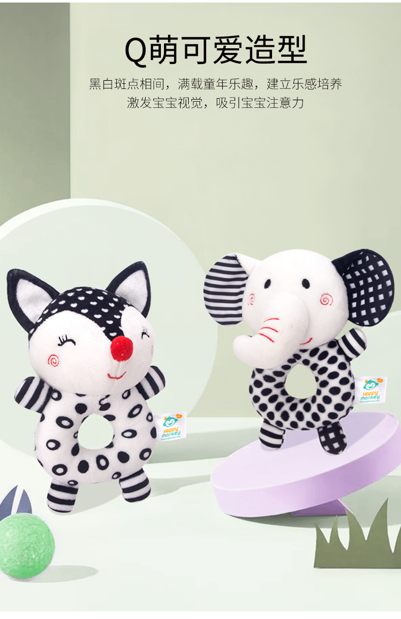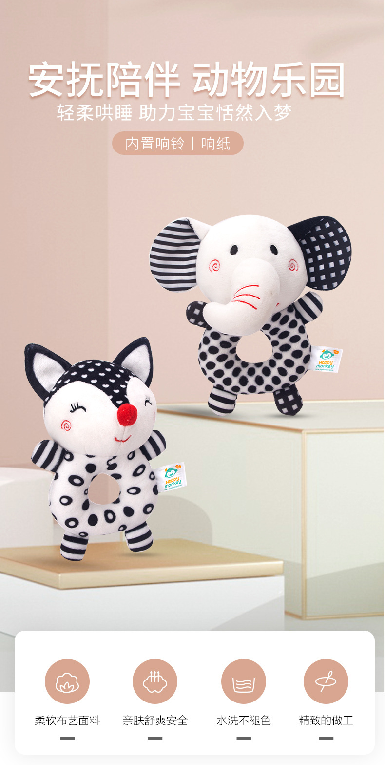 해피 몽키 신생아 핸드벨 아기 장난감 딸랑이 아기 흑백 장난감 여우 코끼리 딸랑이스토어 가기