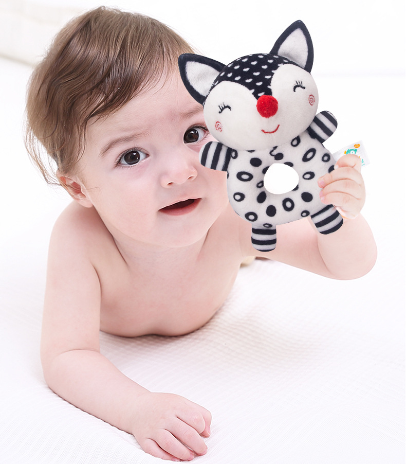 해피 몽키 신생아 핸드벨 아기 장난감 딸랑이 아기 흑백 장난감 여우 코끼리 딸랑이