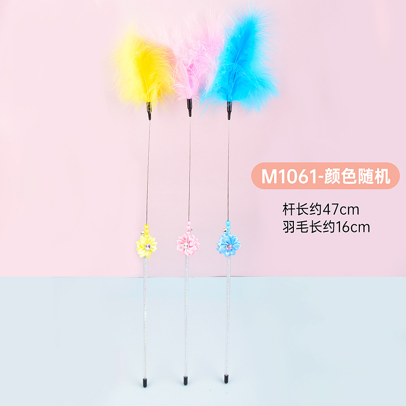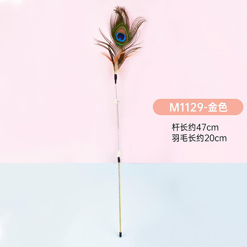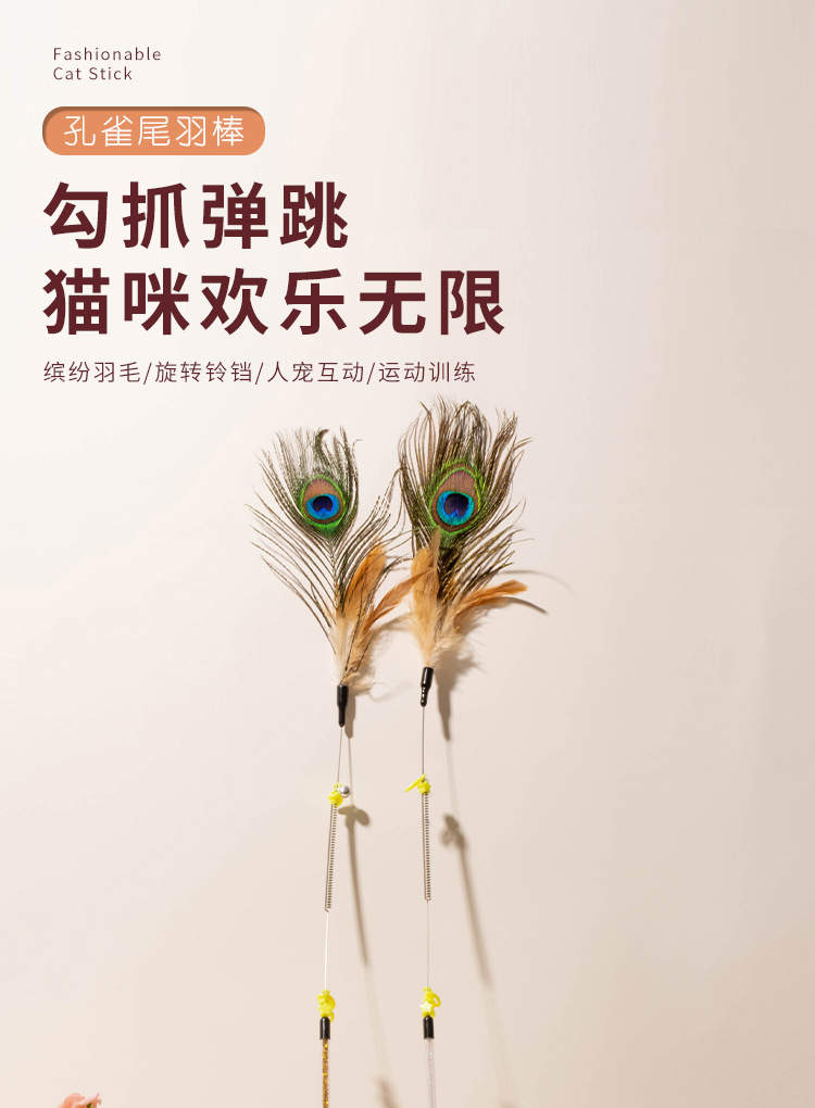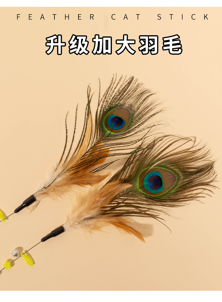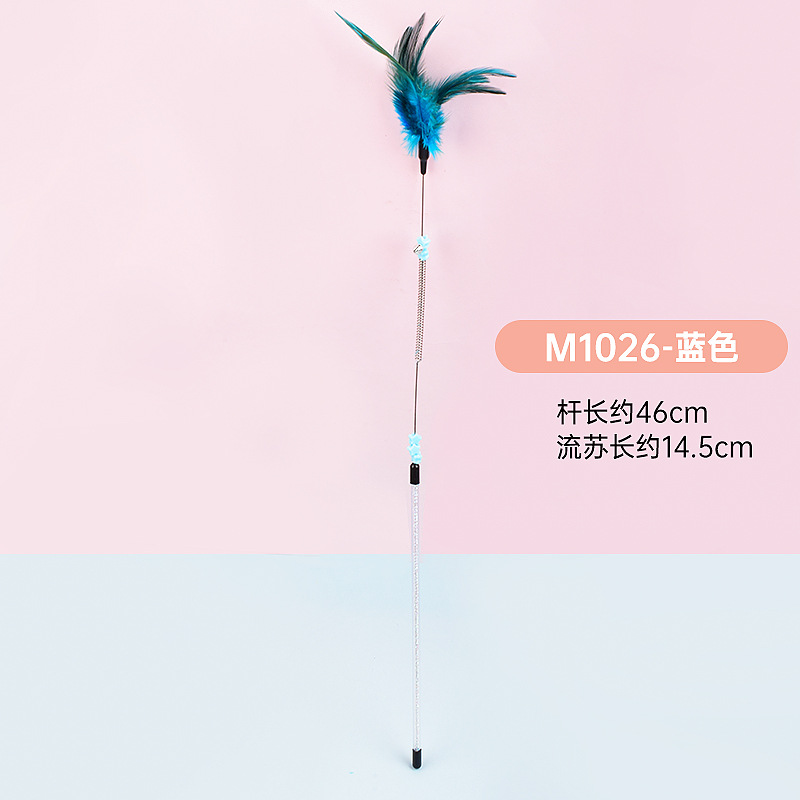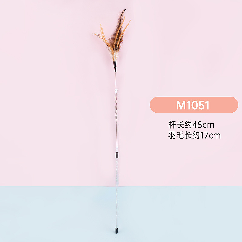 공장 직접 고양이 장난감 강철 와이어 봄 공작 깃털 고양이 스틱 대화 형 스크래치 방지 확장 고양이 스틱 막대 도매스토어 가기