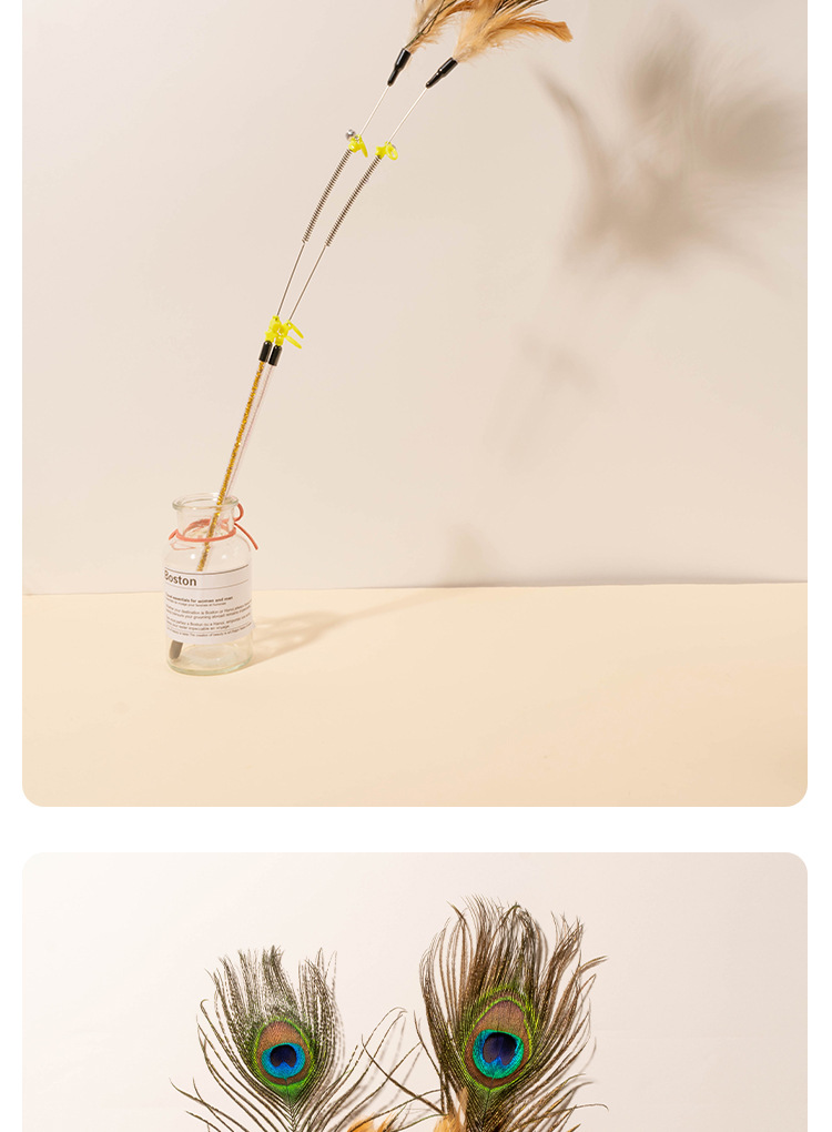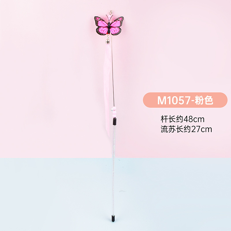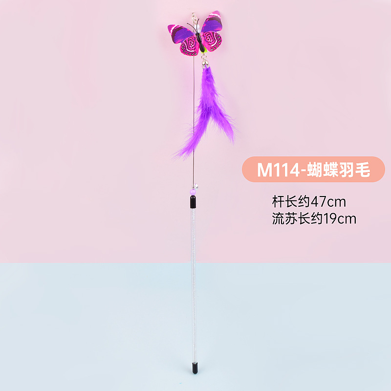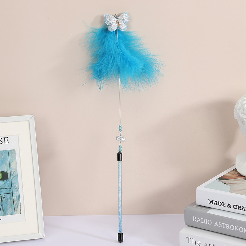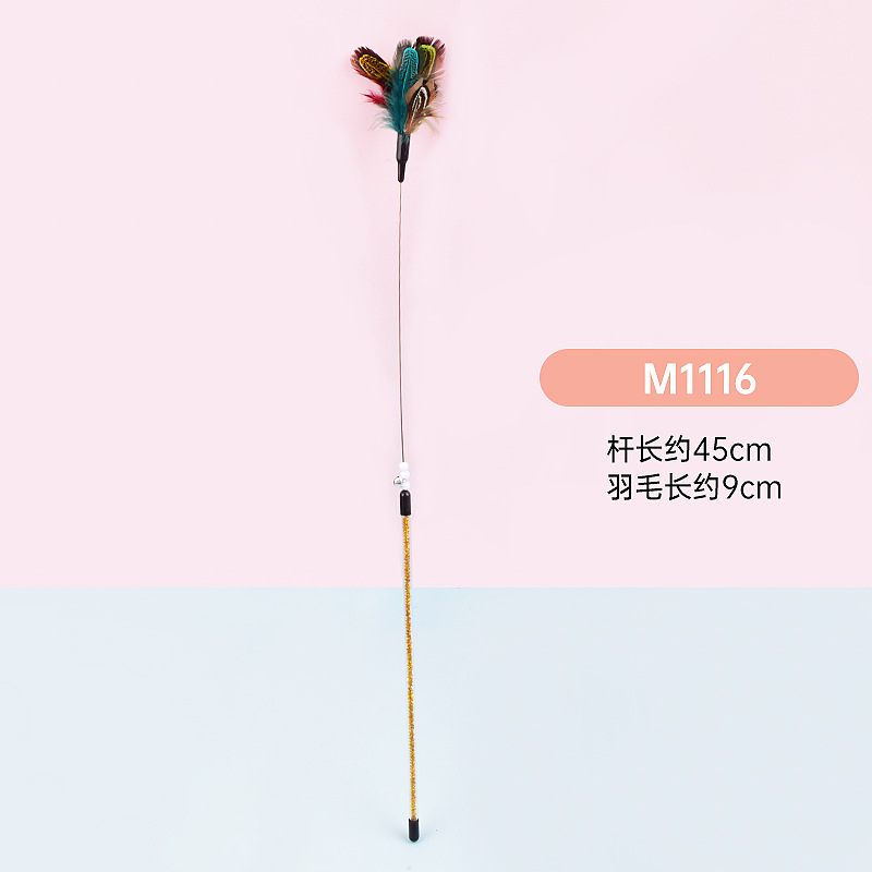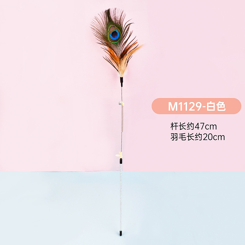 공장 직접 고양이 장난감 강철 와이어 봄 공작 깃털 고양이 스틱 대화 형 스크래치 방지 확장 고양이 스틱 막대 도매스토어 가기