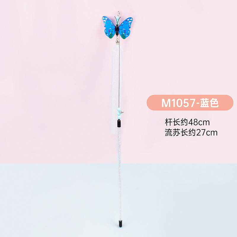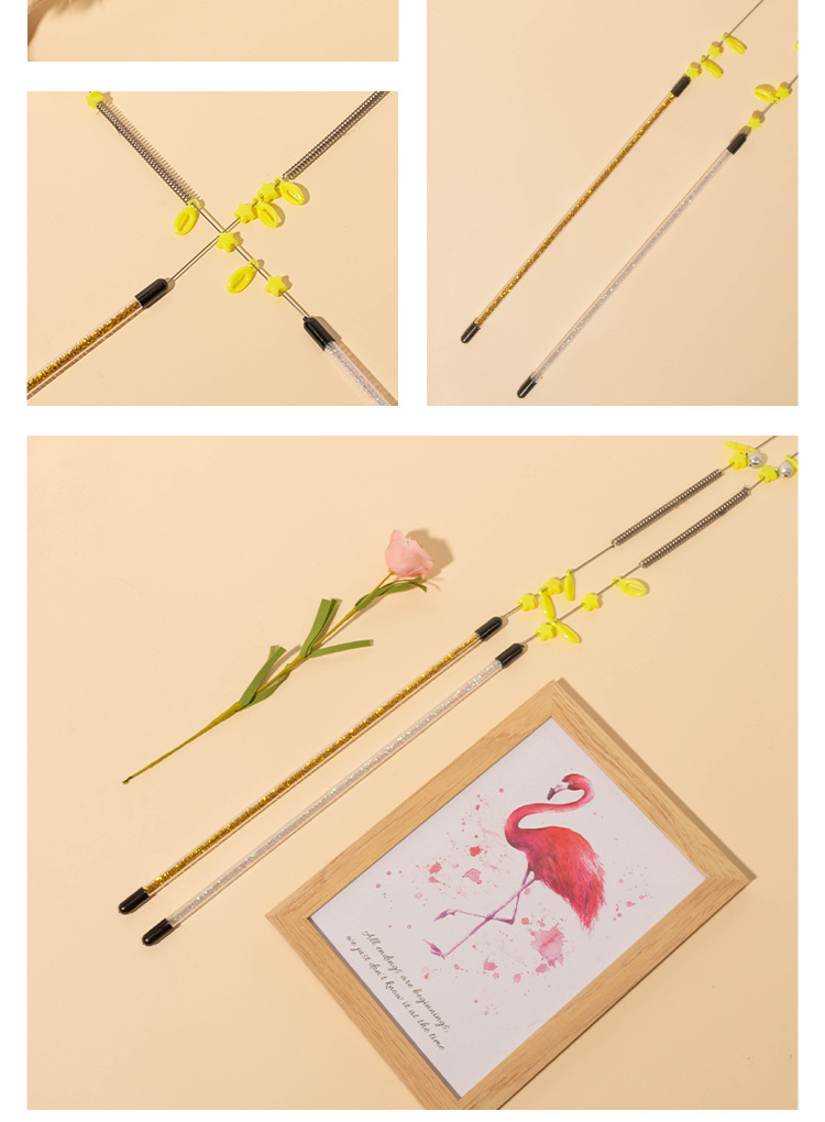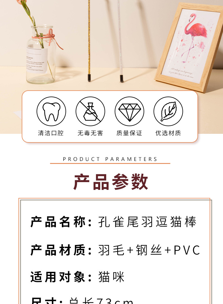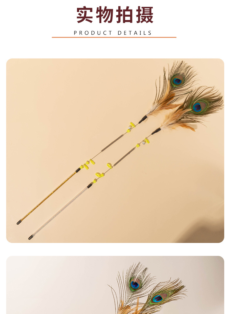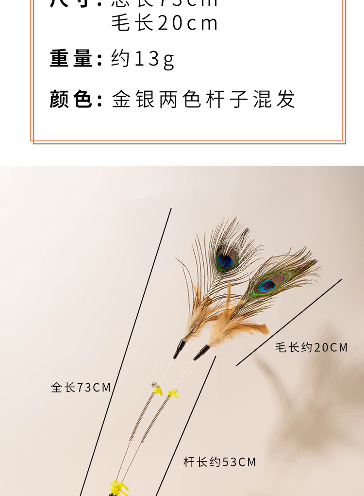 所有逗猫棒的流苏尺寸,都是从钢丝顶部帽子到羽毛末端测量的,由于羽毛大小不一,尺寸会有一定的误差,需要以实物为准。
