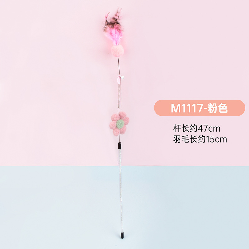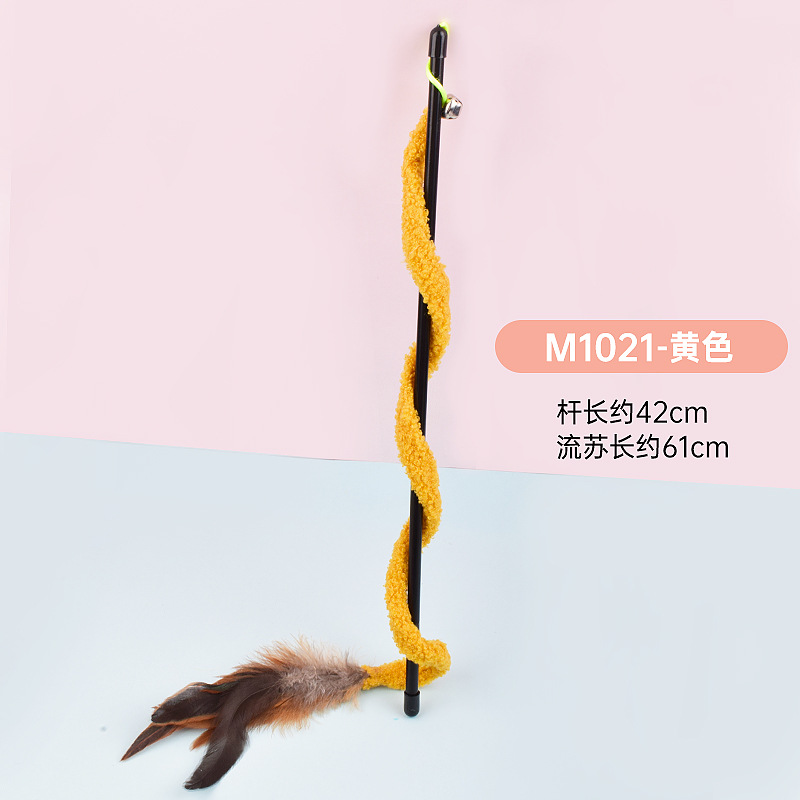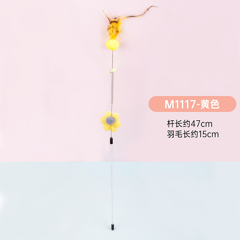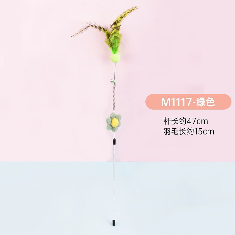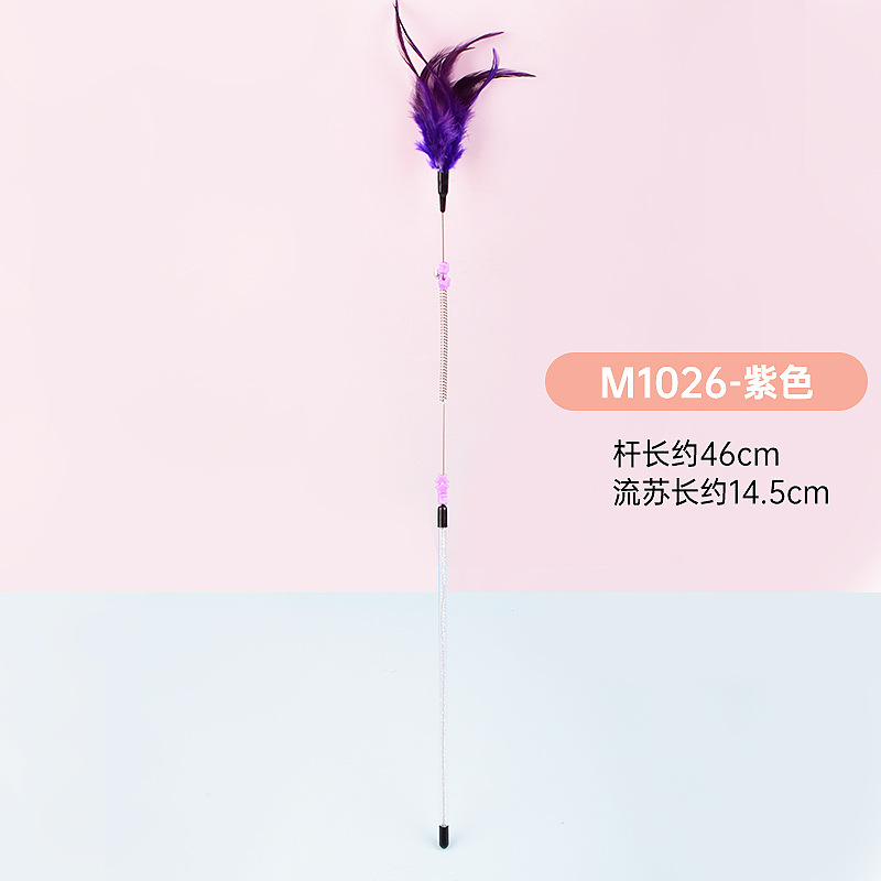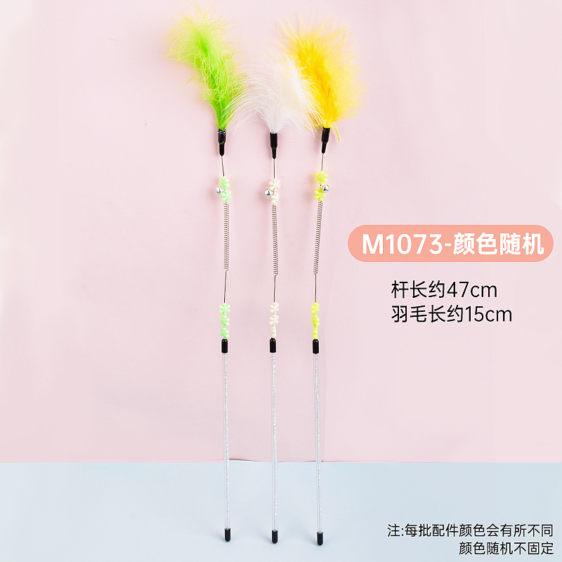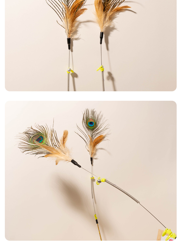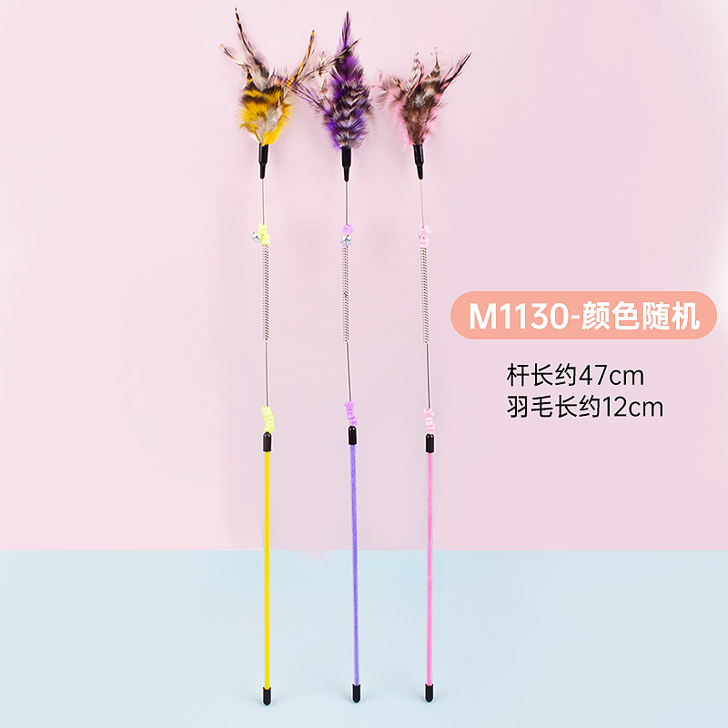 공장 직접 고양이 장난감 강철 와이어 봄 공작 깃털 고양이 스틱 대화 형 스크래치 방지 확장 고양이 스틱 막대 도매