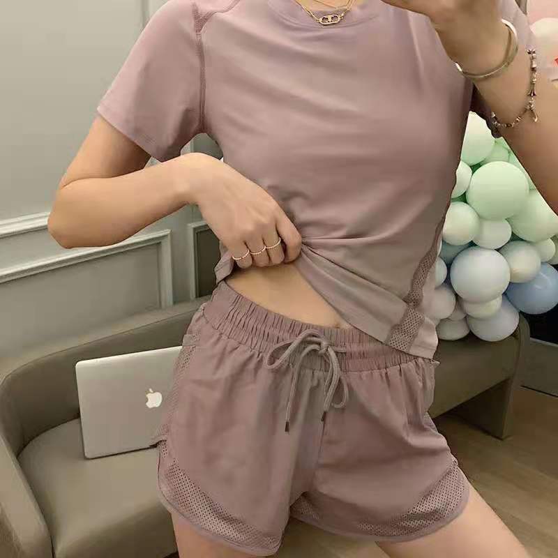 요가 의류 세트 여자 바느질 짧은 소매 통기성 반바지 실행 스포츠 패션 피트니스 의류