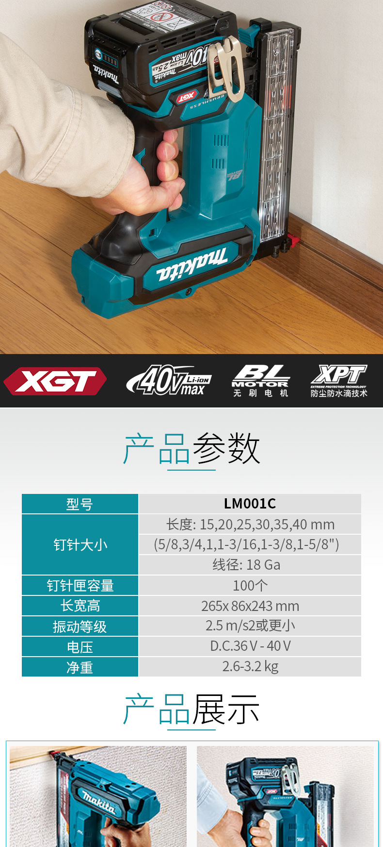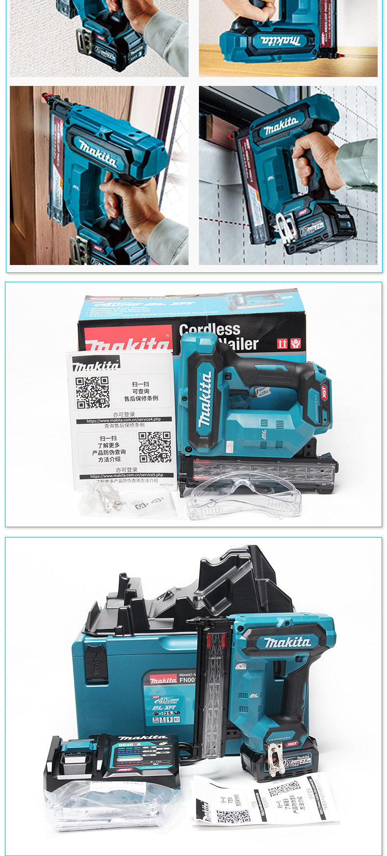 Makita FN001GZ 충전식 스트레이트 네일 건 40v 전기 네일 건 목공 장식 DIY 무선 리튬 네일 건스토어 가기