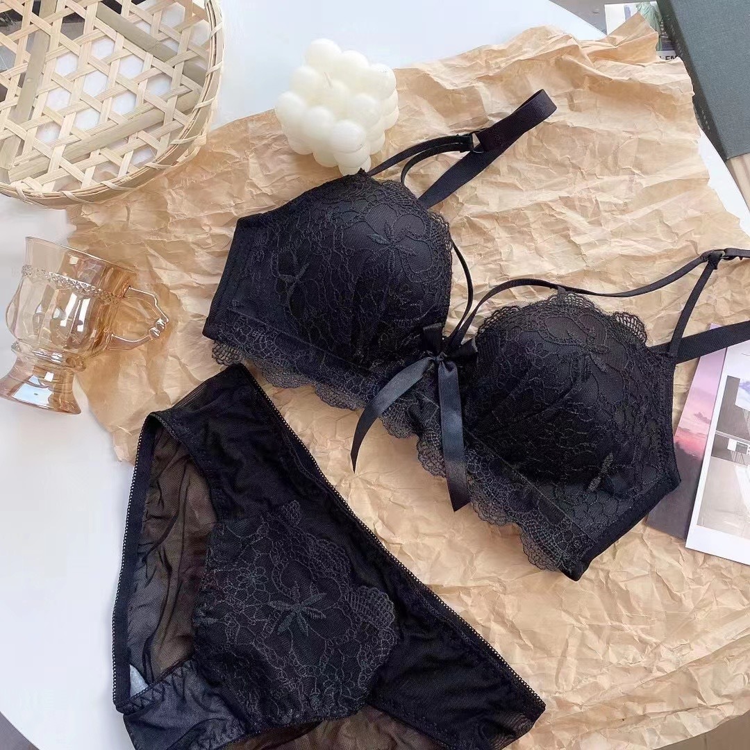 新品 浪漫水溶刺绣蕾丝中厚杯无痕侧收聚拢无钢圈三排扣文胸套装