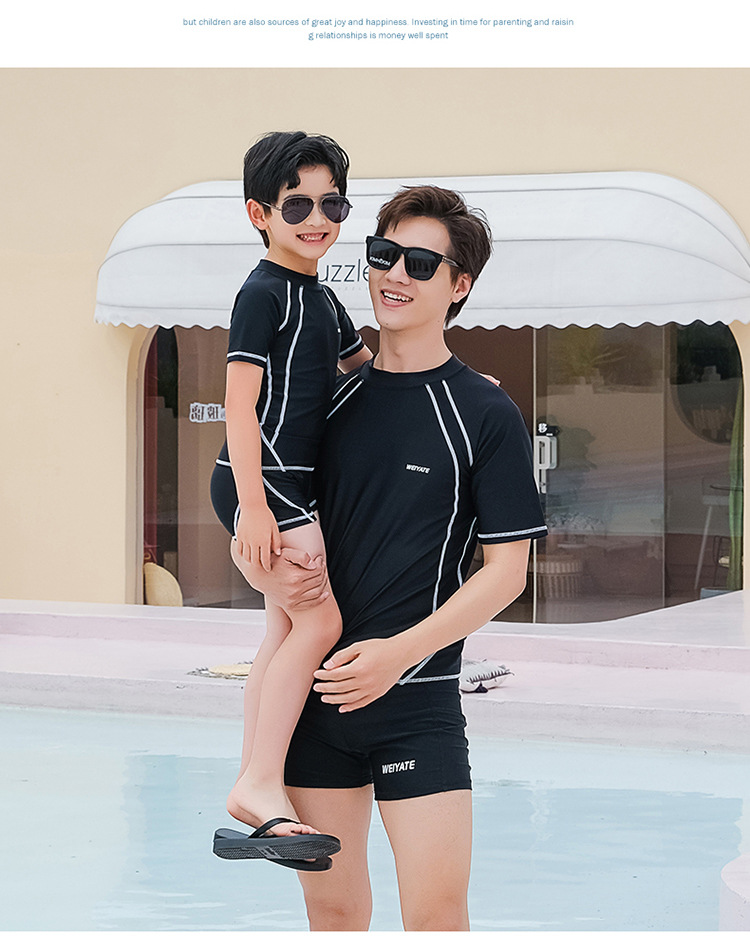 아버지와 아들 부모-자식 수영복 어린이 수영복 분할 태양 방지 통기성 따뜻한 반팔 남아 수영복 남성용 다이빙 세트