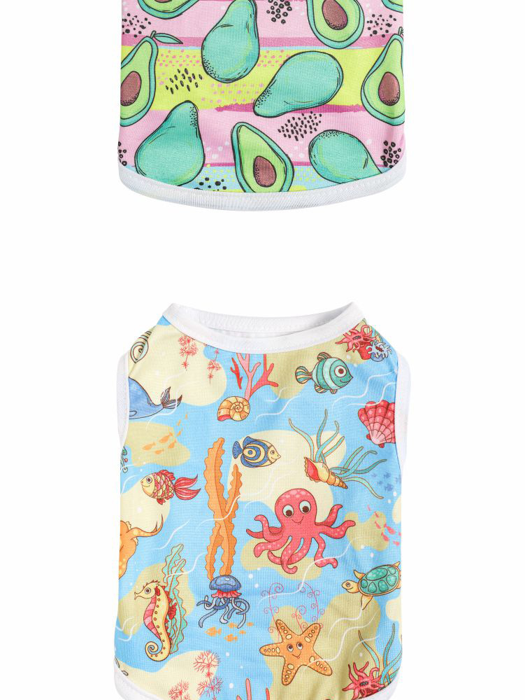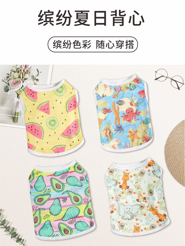 소스 공장 폴리 에스터 새 여름 개 옷 하트 프린트 조끼 얇은 애완 동물 의류 테디 프렌치 조끼스토어 가기