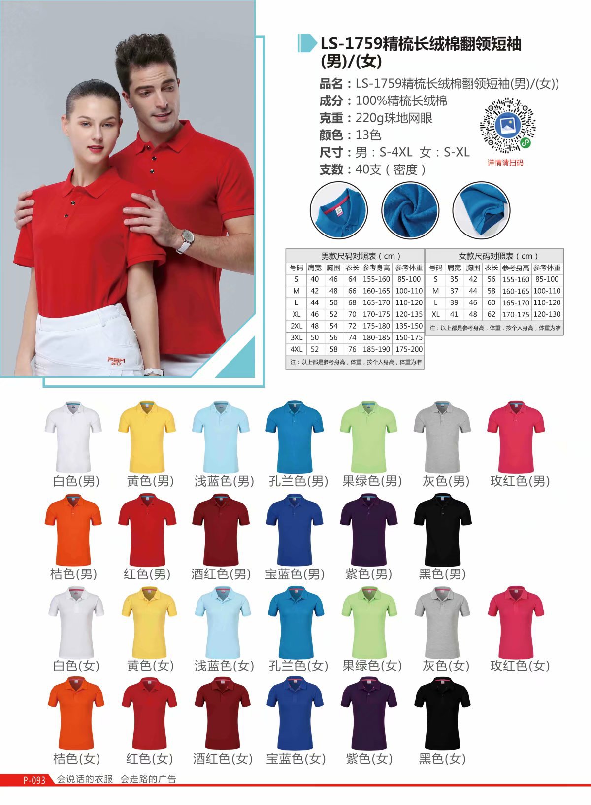 LS-1759精梳长绒棉翻领短袖(男)(女)
