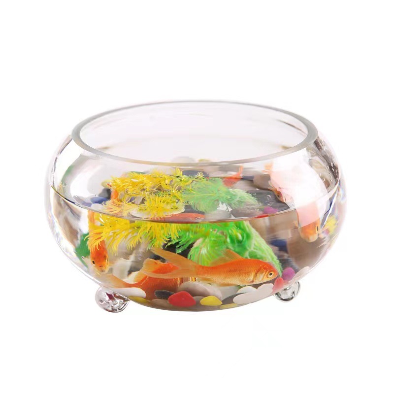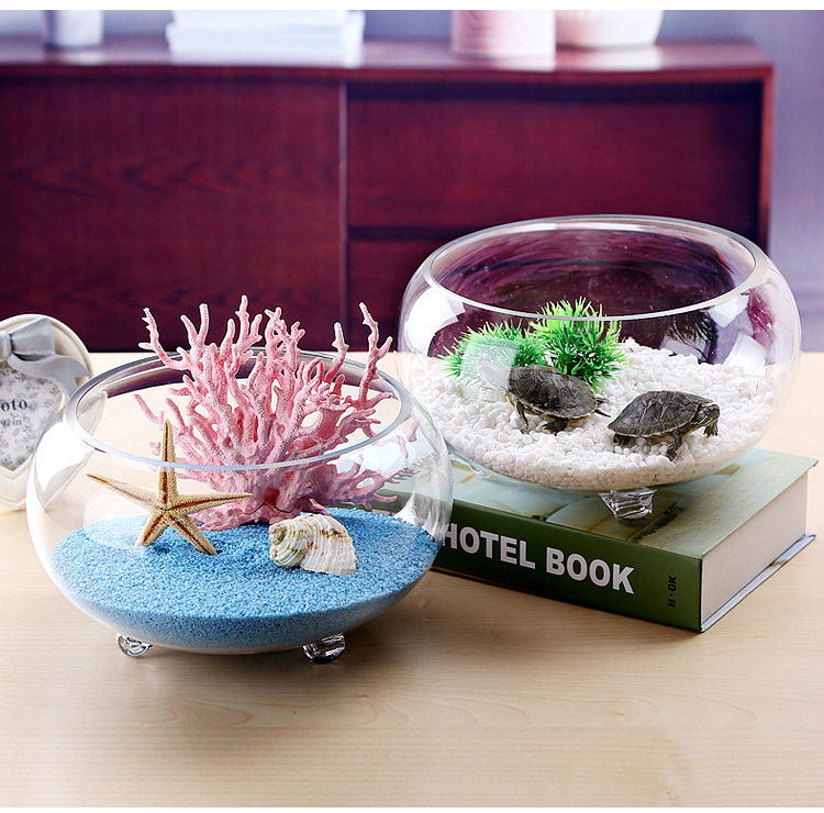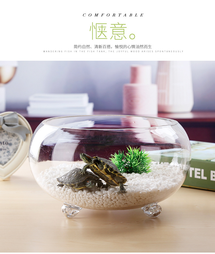 투명하고 두꺼운 유리로 만든 발톱 모양의 원형 어항, 거실용 대형 두꺼운 금붕어 어항, 소형 탁상 수경재배 거북이 어항