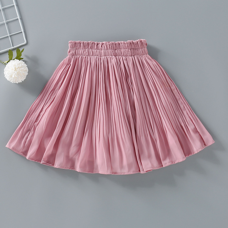 어린이 스커트 새로운 2023 여름 짧은 스커트 한국식 주름 쉬폰 스커트 아기 신선한 통기성 스커트
