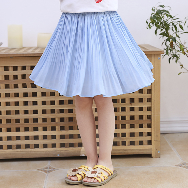 어린이 스커트 새로운 2023 여름 짧은 스커트 한국식 주름 쉬폰 스커트 아기 신선한 통기성 스커트스토어 가기