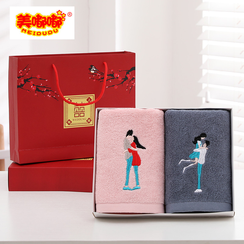 면 자수 웨딩 선물 파우더 블루는 퇴색하기 쉽지 않다 머리카락을 잃기 쉽지 않다 로고 선물 코튼 타월의 세대
