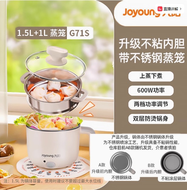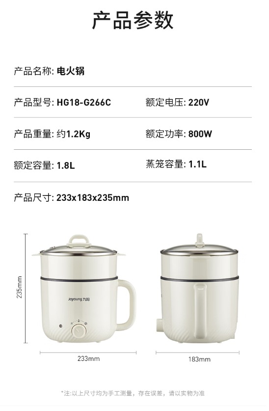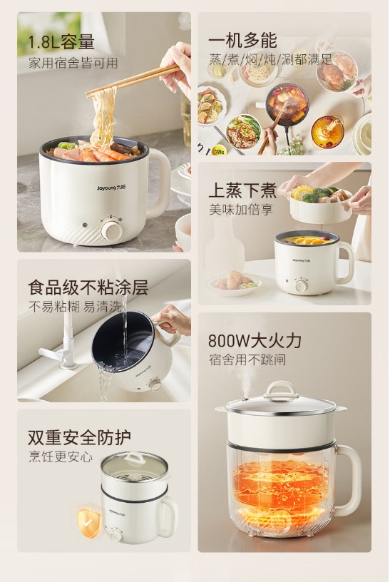 조양 전기 냄비 다기능 1.8L 전기 찜기 학생 기숙사 전기 냄비 1-2인용 전골 HG18-G266C스토어 가기