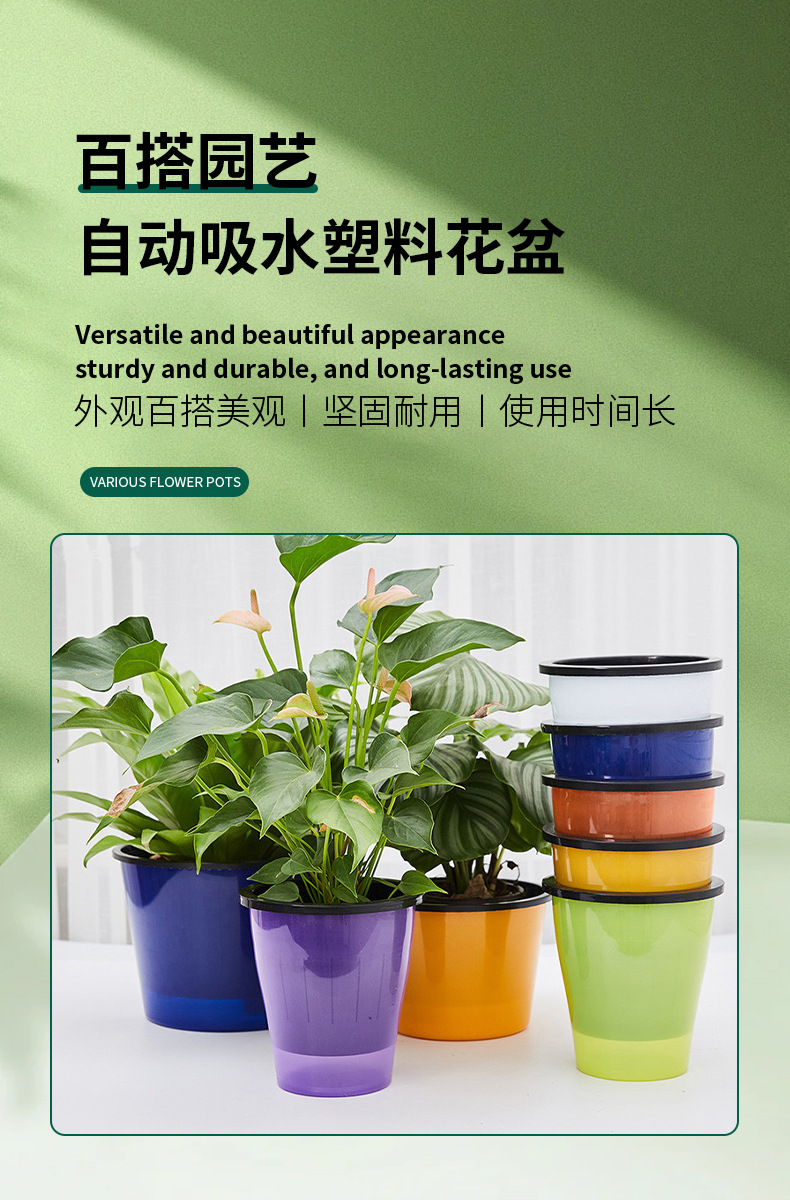 게으른 꽃 냄비 자동 흡수 냄비 두꺼운 수지 내구성 식물 수경 반투명 가정용 플라스틱 화분스토어 가기
