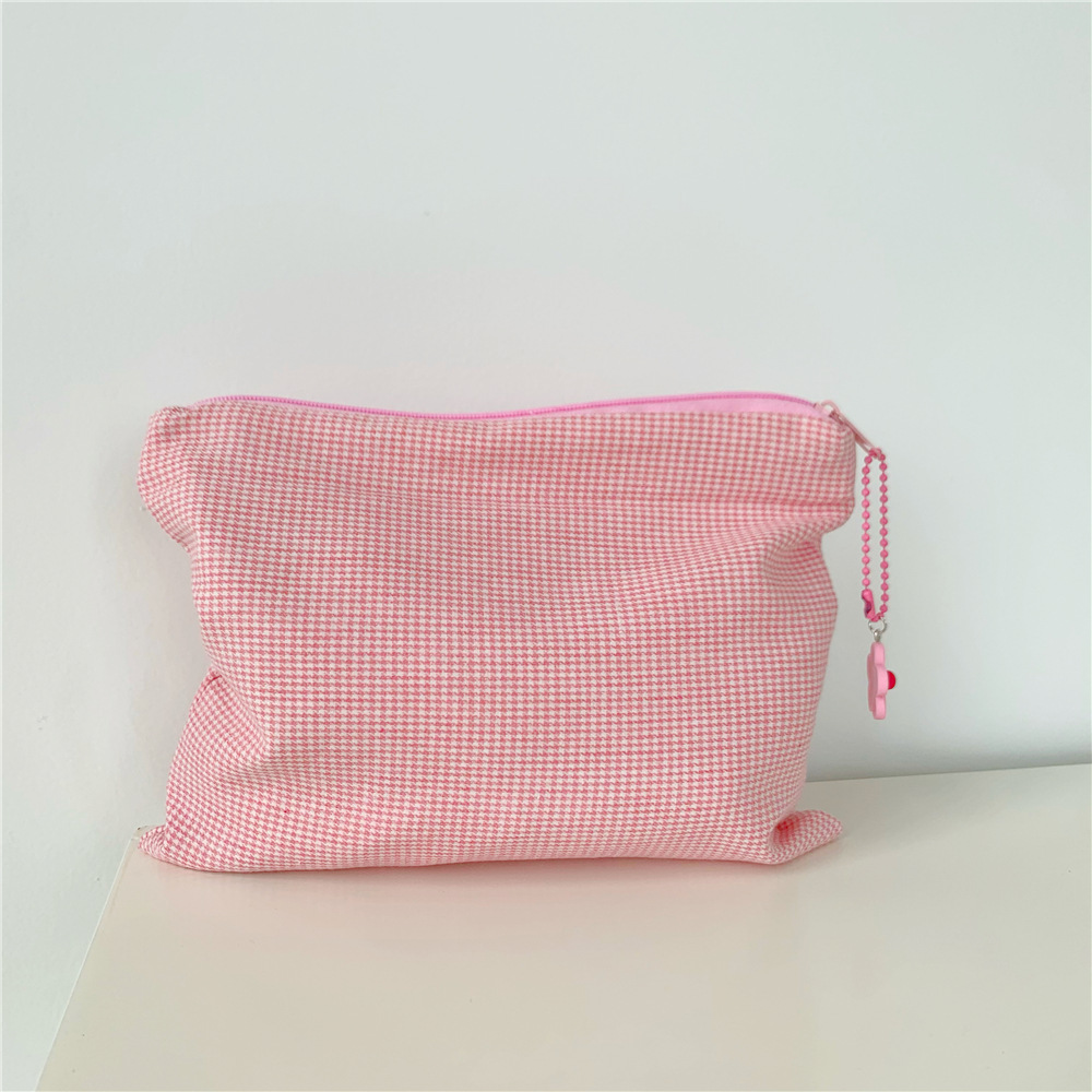 다채로운 체크 메이크업 가방 코튼 패브릭 보관 소녀의 Instagram 스타일 간단한 보관 가방