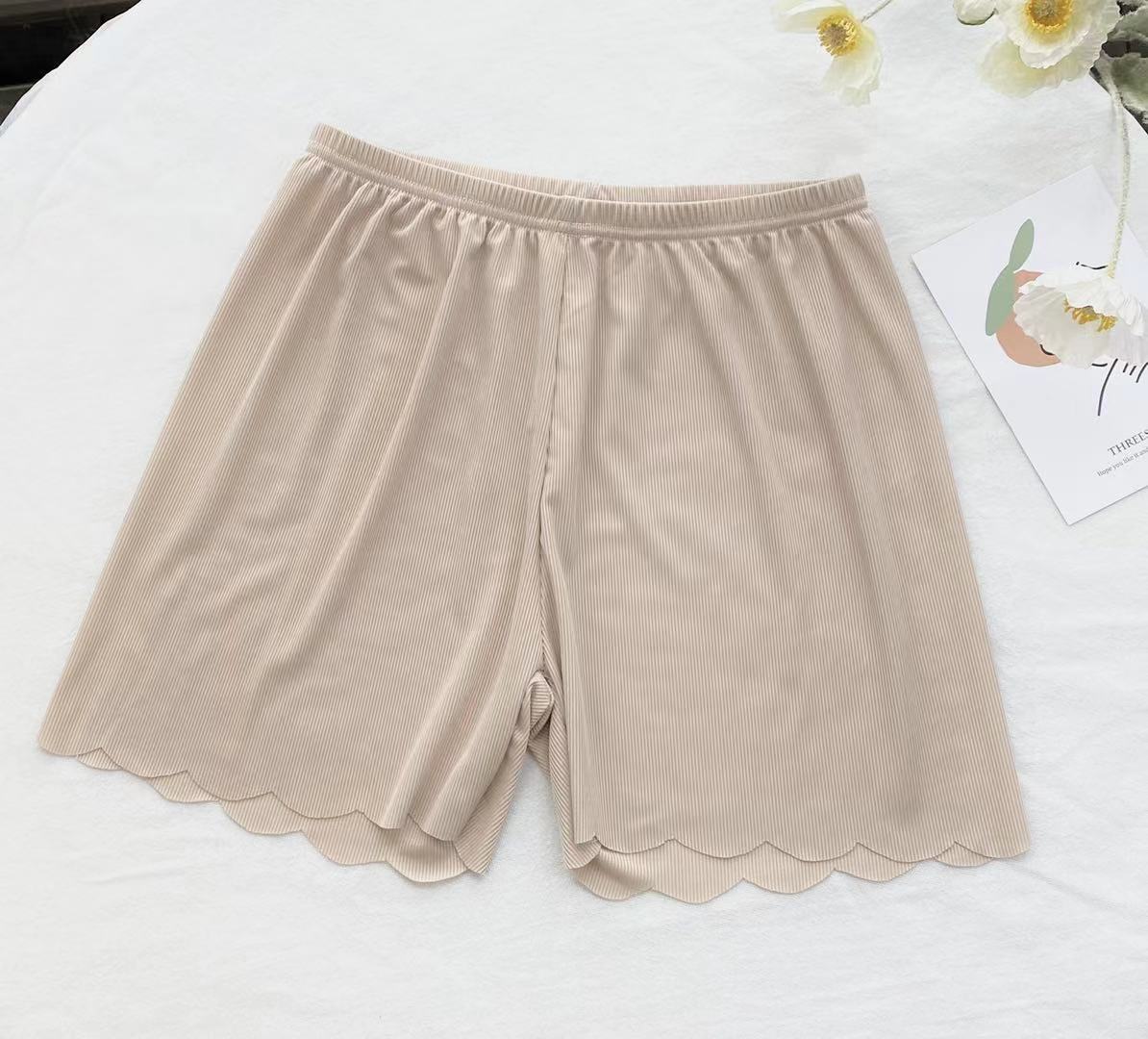 여름 얇은 여성용 심리스 아이스 실크 안전 바지 여성용 느슨한 겉옷 물결 모양 가장자리 3 점 안티 러닝 베이스 반바지