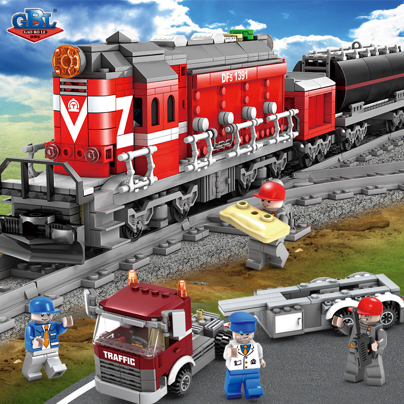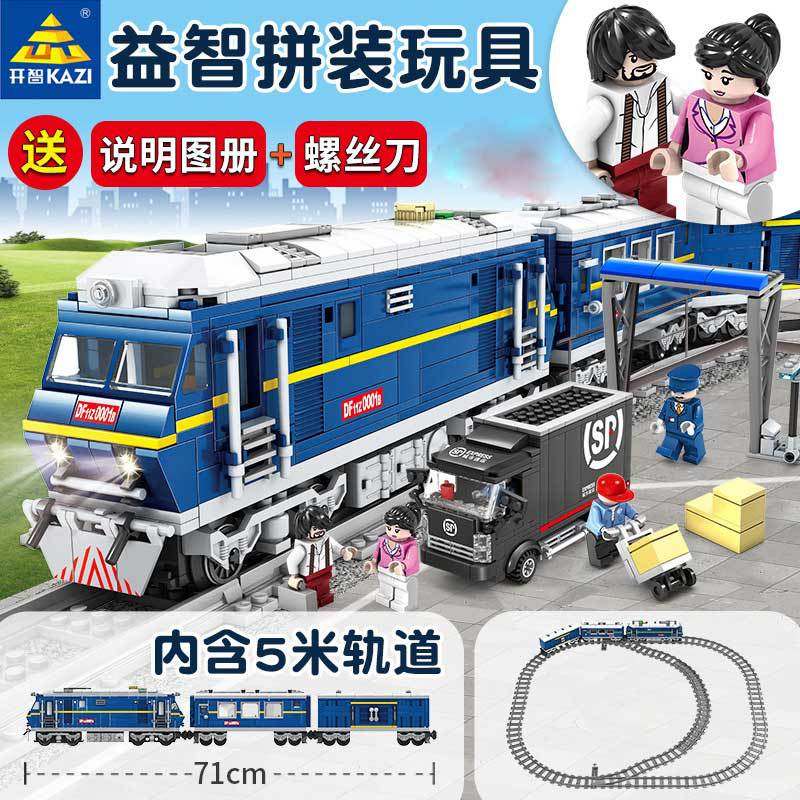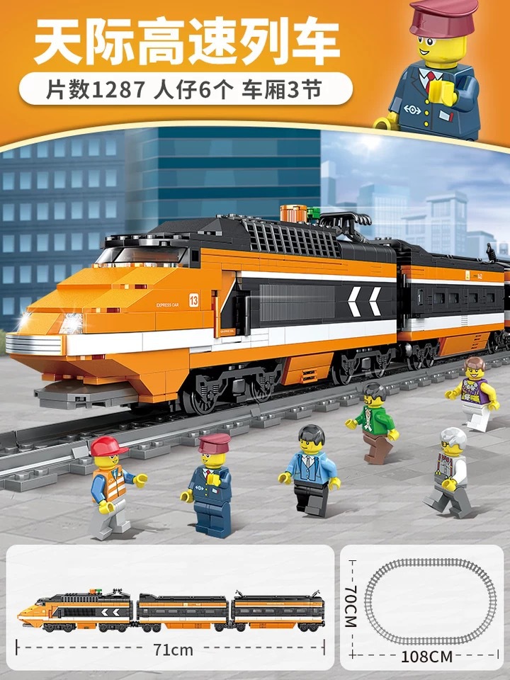 레고 시티 시리즈 기차와 호환되는 전기 철도 열차 라운드 레일 어린이 지능 조립 완구 난이도