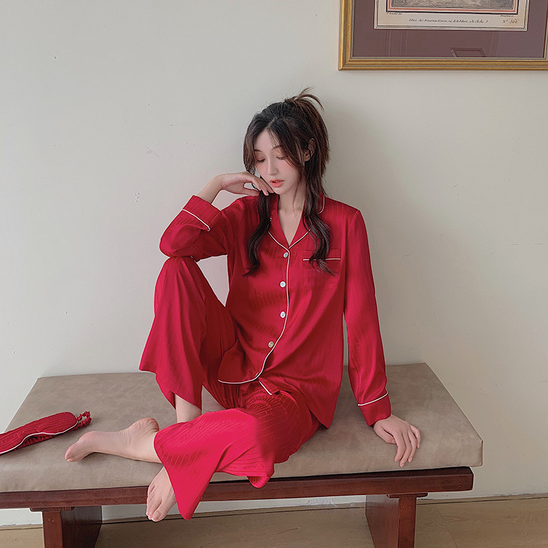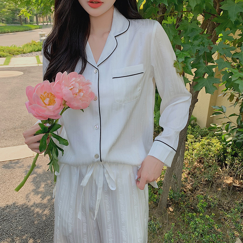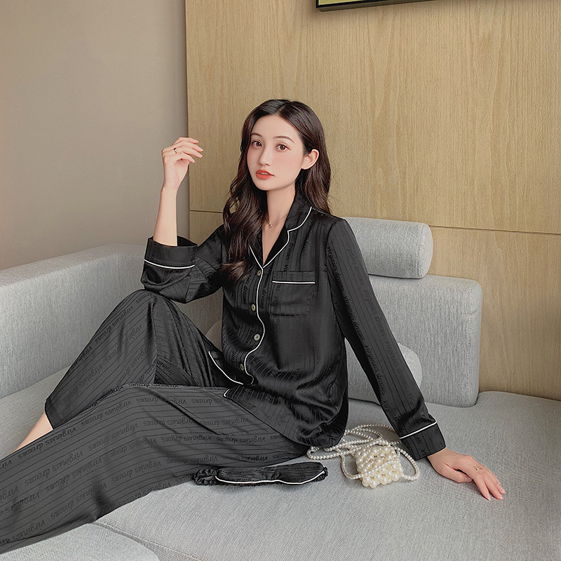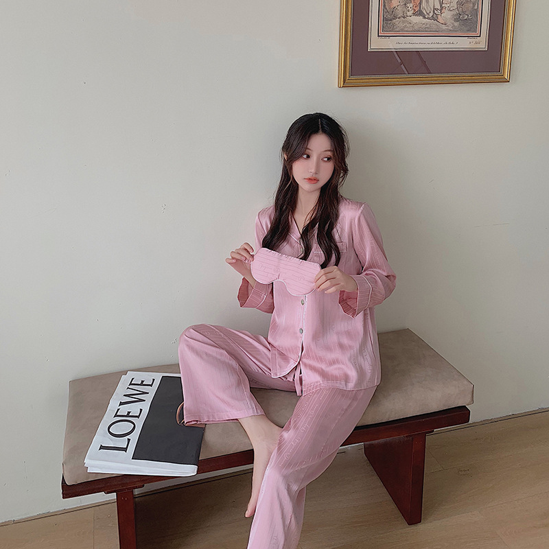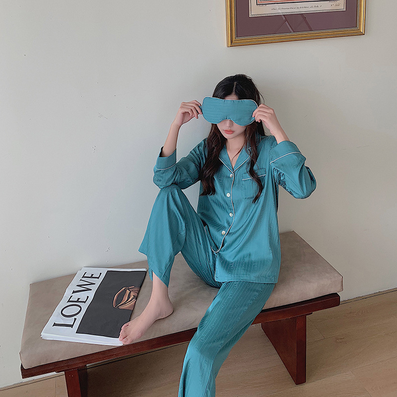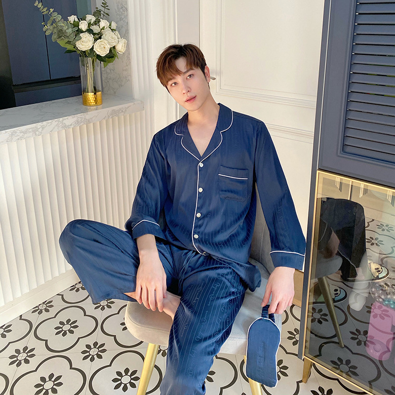 2021 여름 새로운 아이스 실크 잠옷 여자의 긴 소매 바지 커플의 세트 아이스 실크 가정 의류