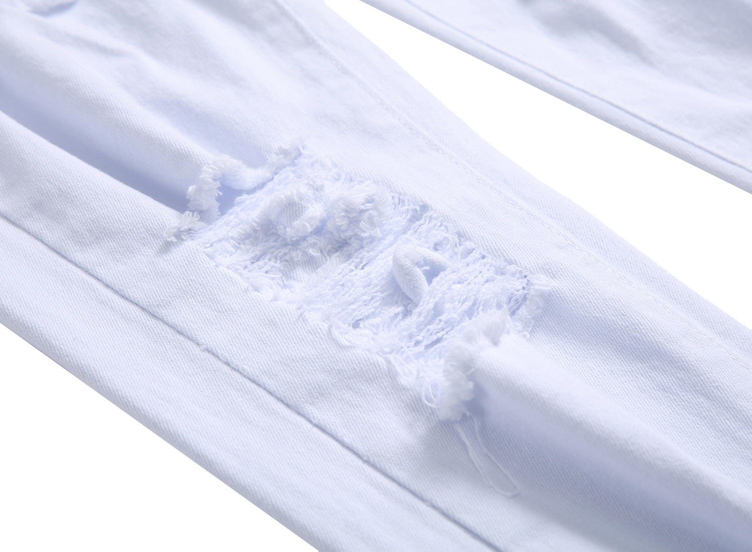 크로스 보더 남성 캐주얼 큰 찢어진 스트레치 바지 슬림핏 데님 남성 멀티 찢어진 흰색 바지