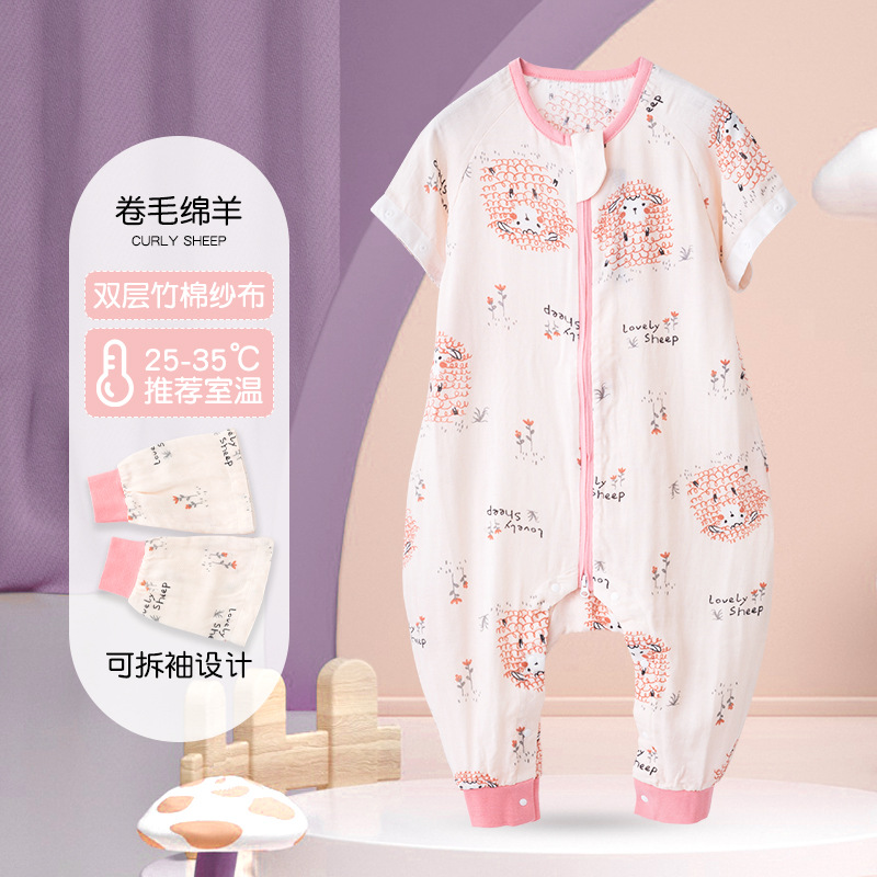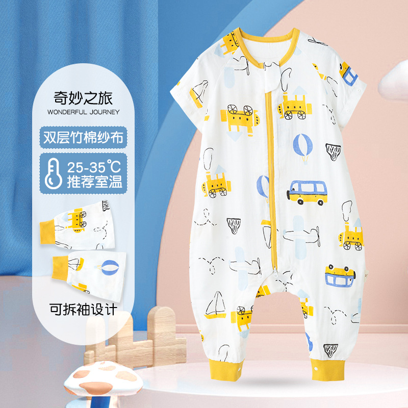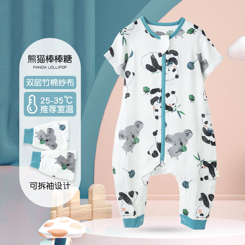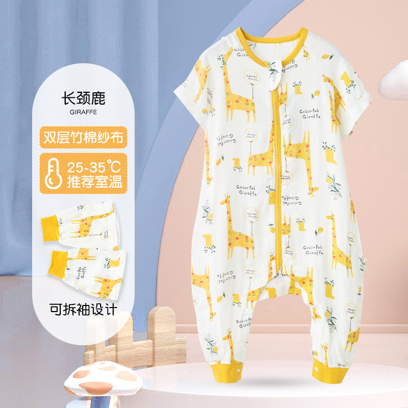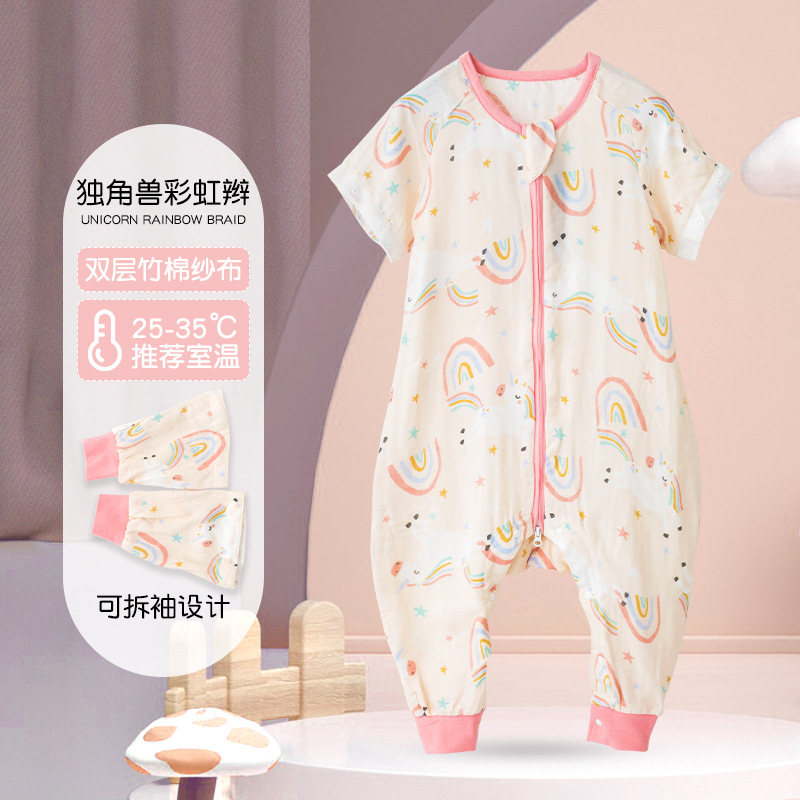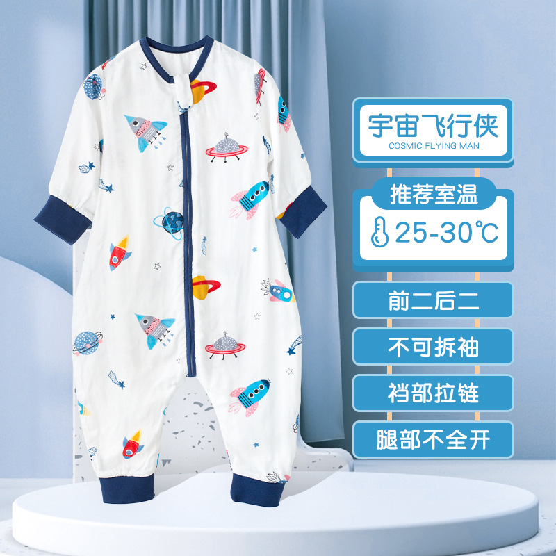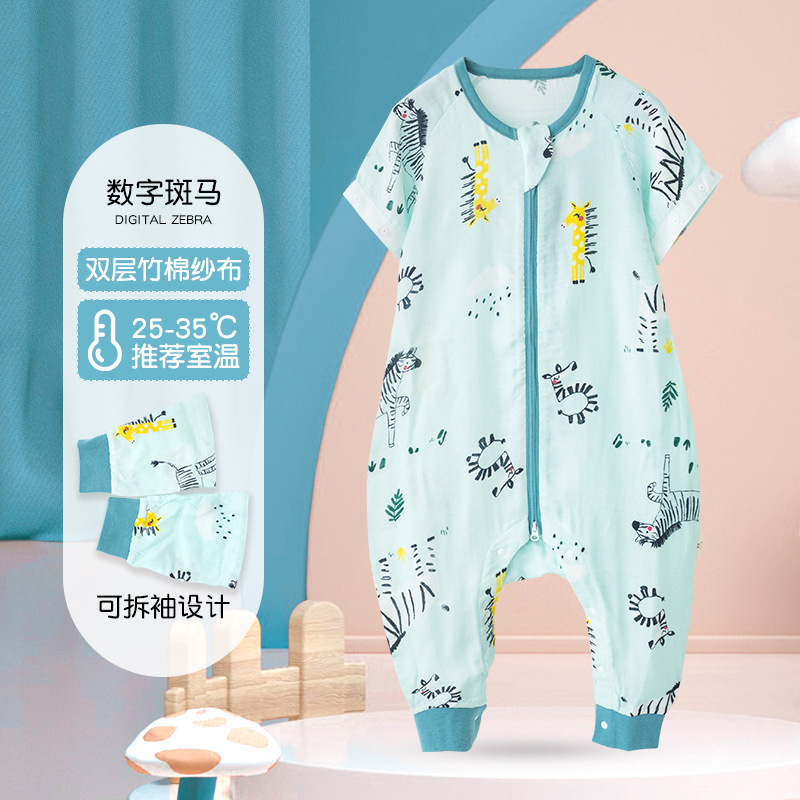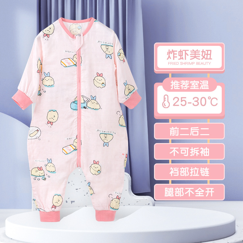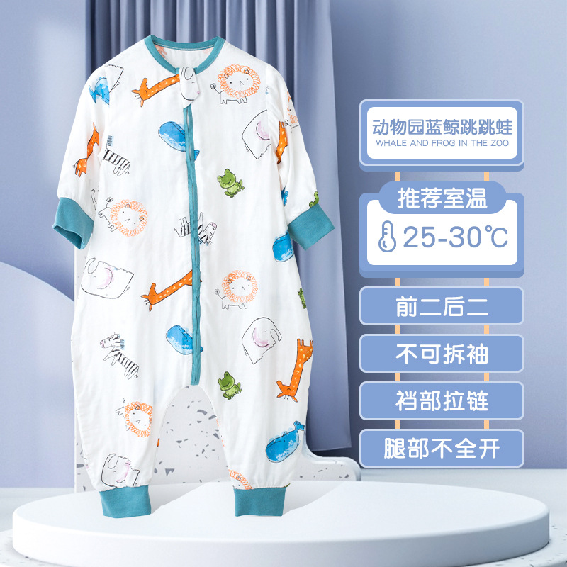 아기 침낭 여름 얇은 더블 레이어 대나무 면 거즈 침낭 아기 어린이 다리 침낭 에어컨 룸 킥 방지 이불스토어 가기