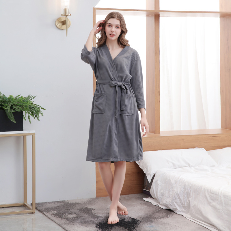 일본과 한국의 새로운 목욕 가운 여성용 봄과 여름 와플 얇은 잠옷 남성용 흡수성 느슨한 목욕 가운 호텔 잠옷 도매