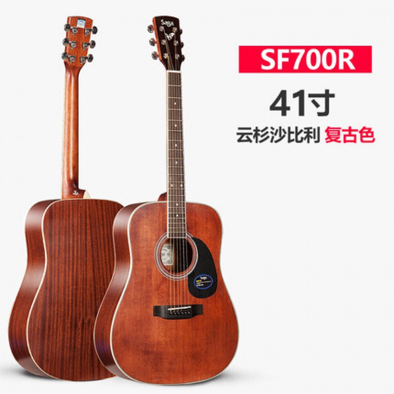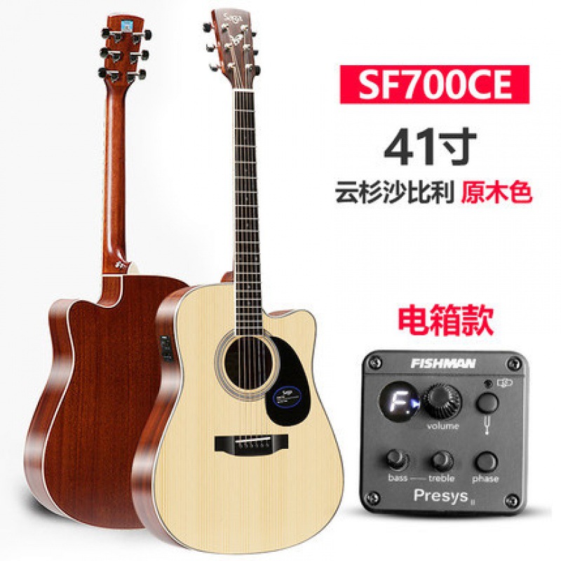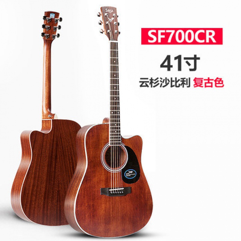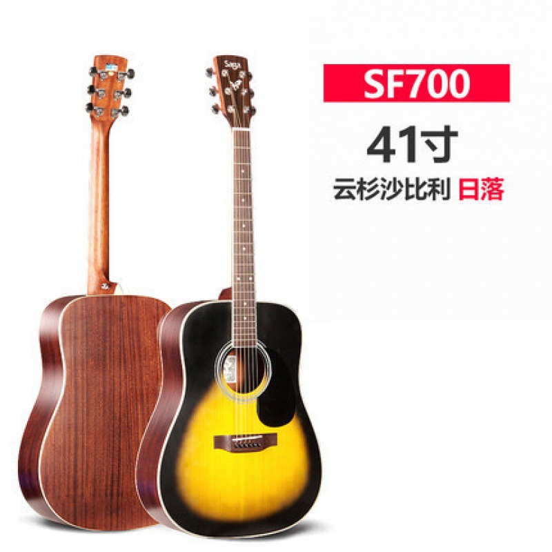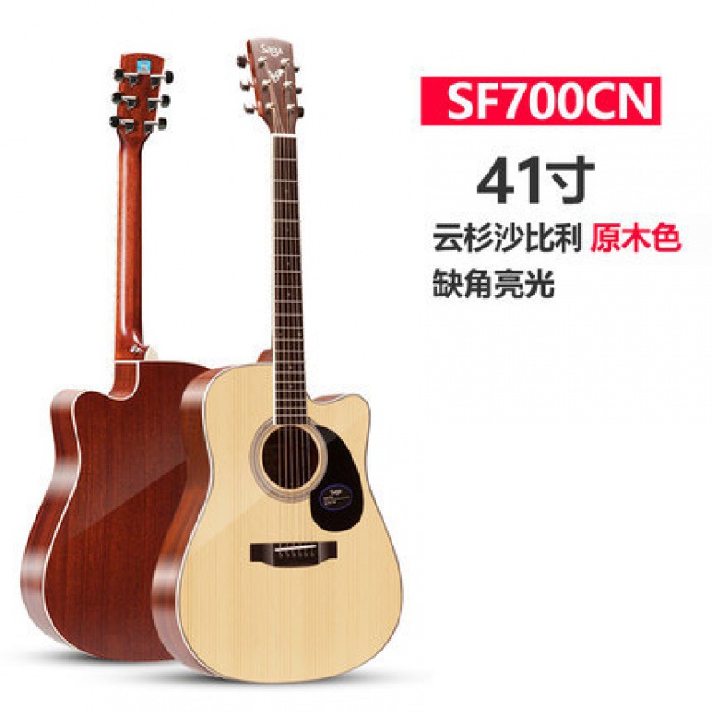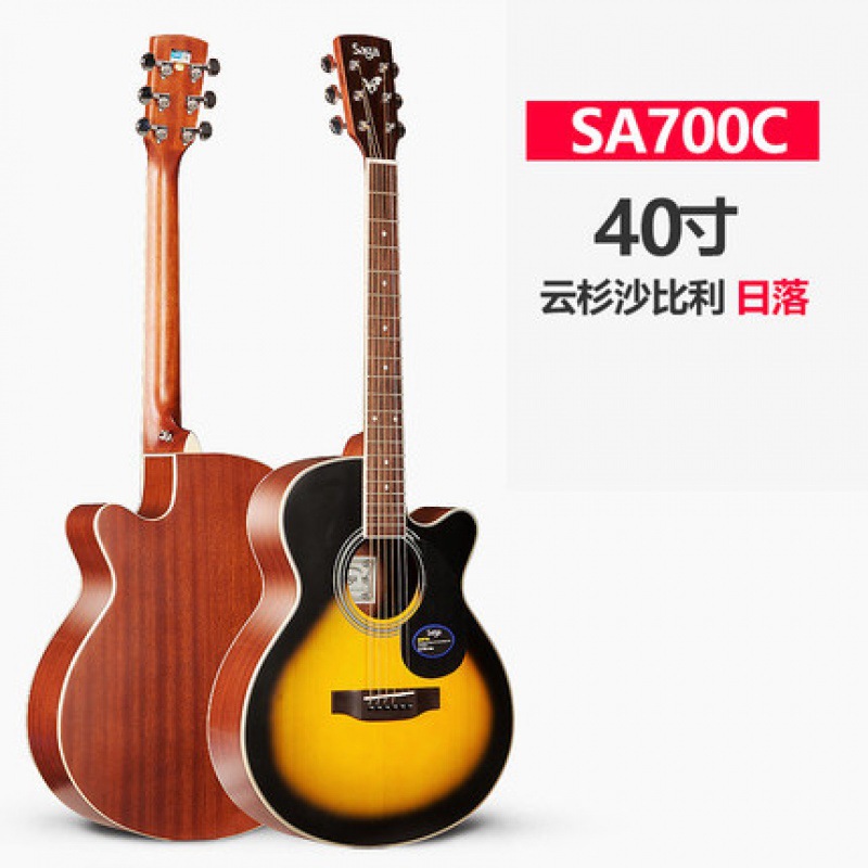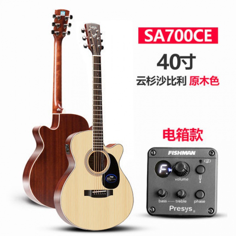 Saga saga SF700C 싱글 보드 포크 기타 초보자 전기 상자에 남녀 학생들이 누락 된 각도 나무 기타를 둥글게