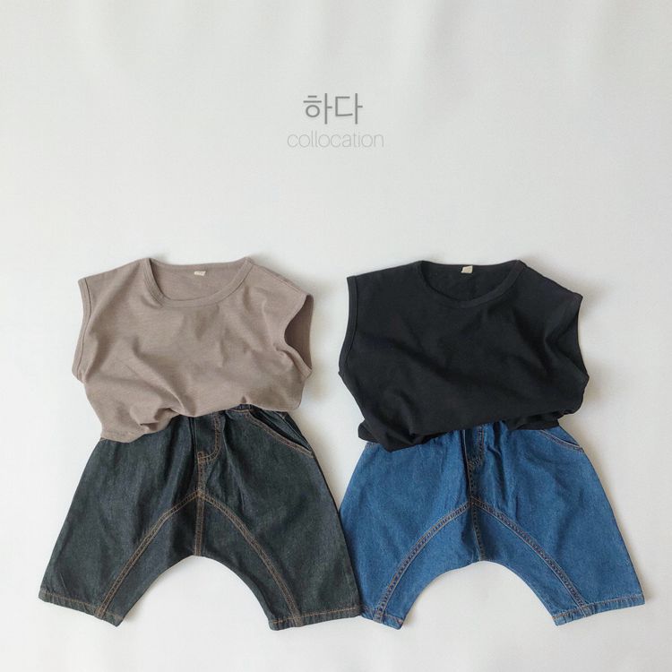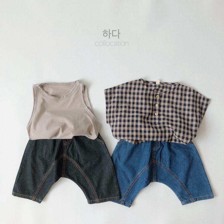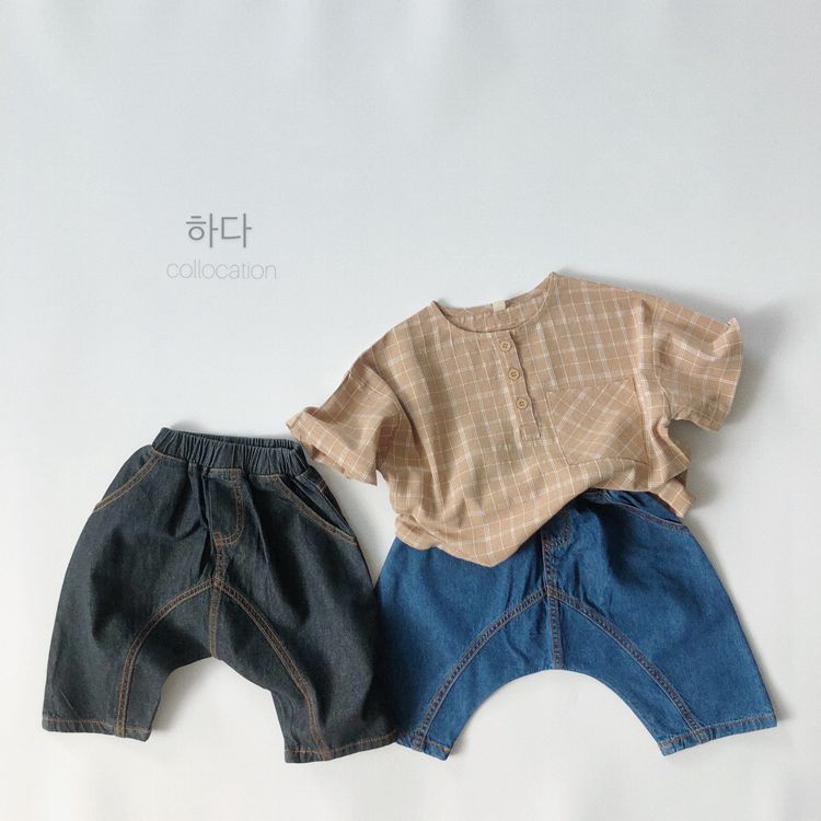 아동용 청바지, 여름 신상 한국 스타일 빅PP 청바지, 남녀 아기용 7부 루즈핏 바지, 해외 직배송스토어 가기