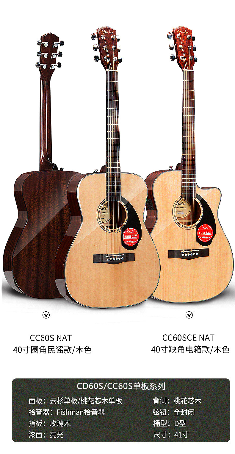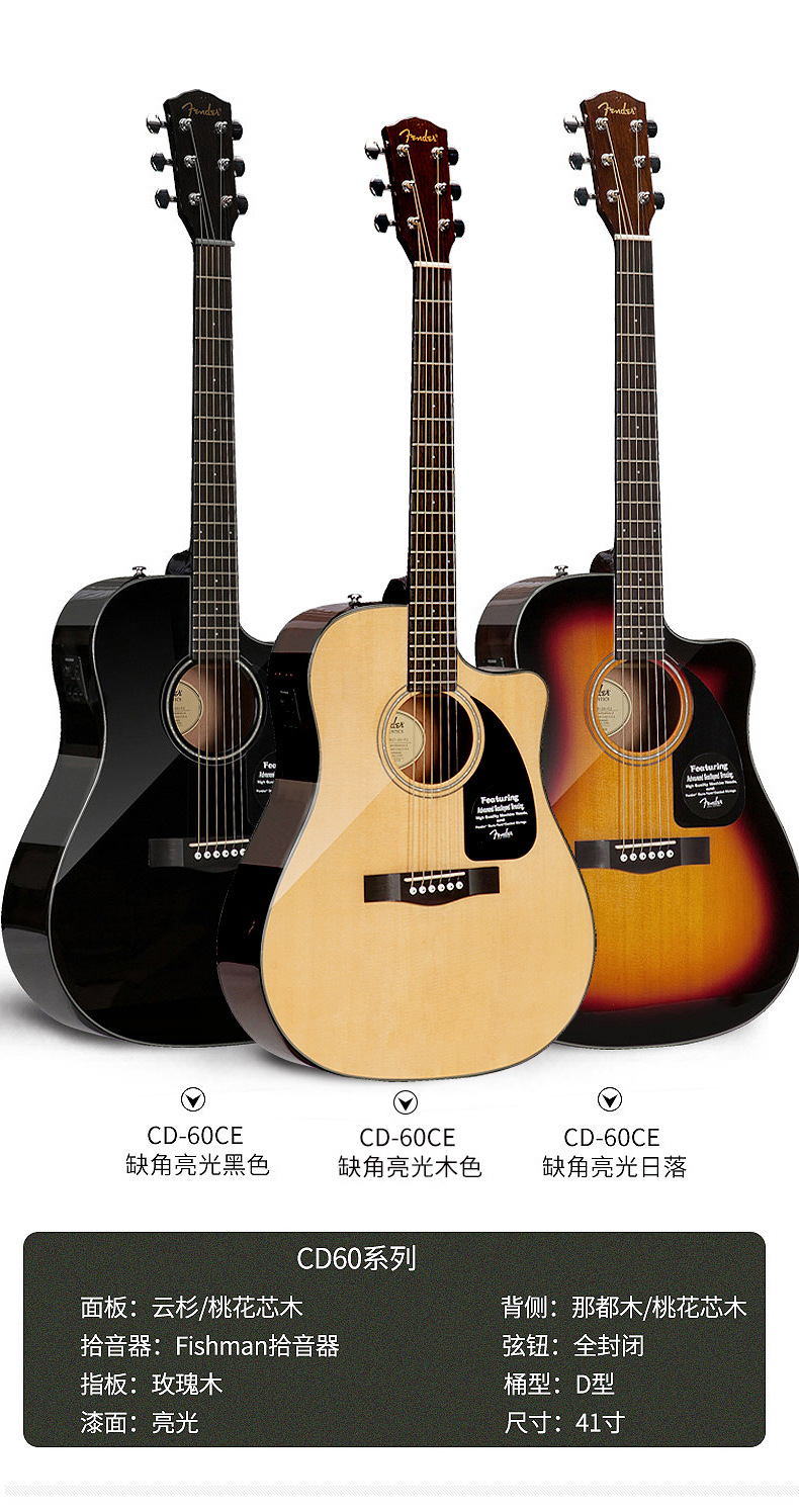 펜더 펜더 환타 기타 CD60 41 인치 어쿠스틱 어쿠스틱 기타 초보자 학생 전기 상자 기타 악기스토어 가기