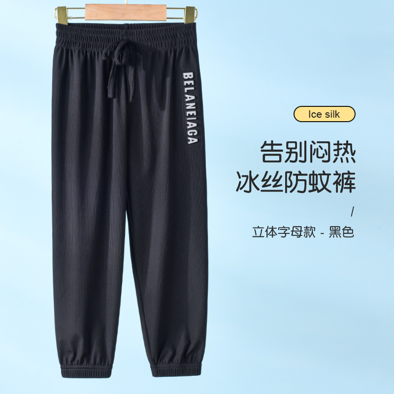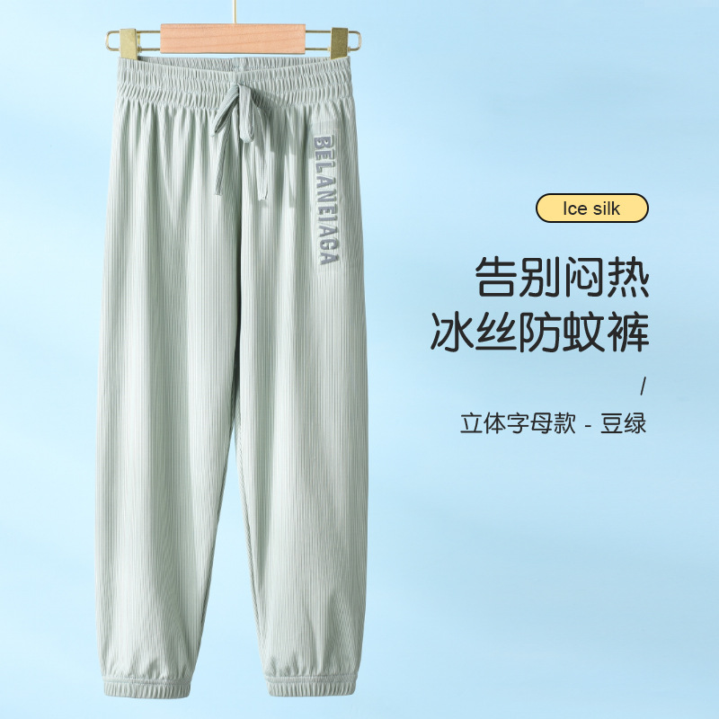 어린이 모기 방지 바지 얇은 여름 아이스 실크 남성 바지 어린이 여름 착용 랜턴 바지 여름 아동복 소녀 용 바지스토어 가기