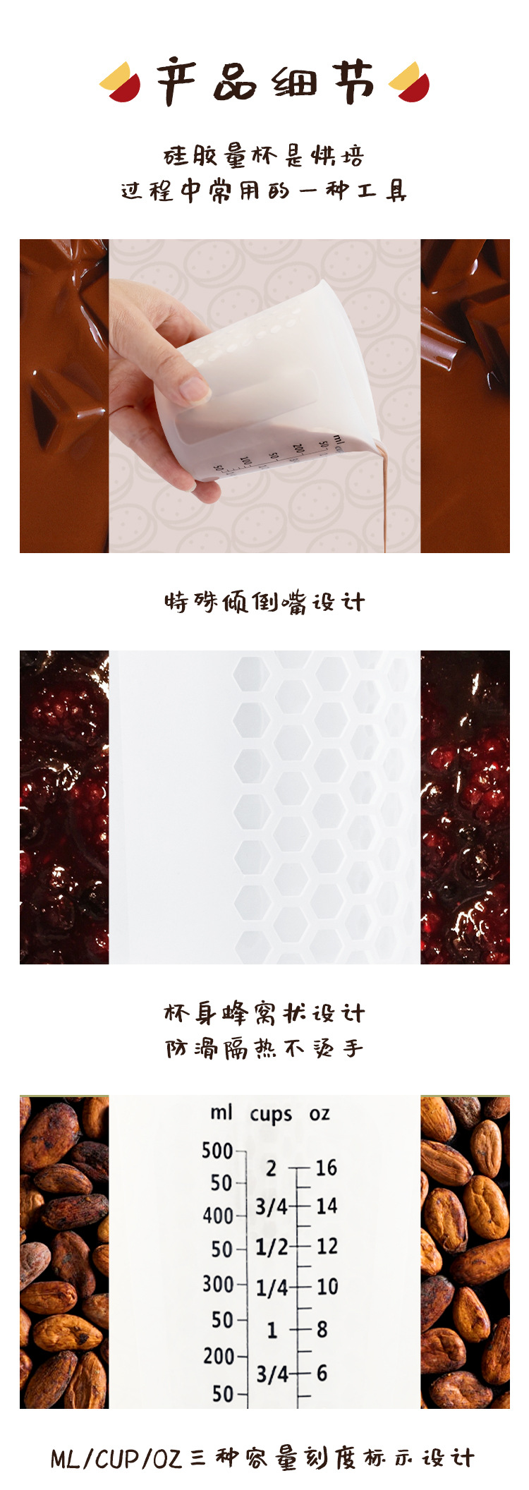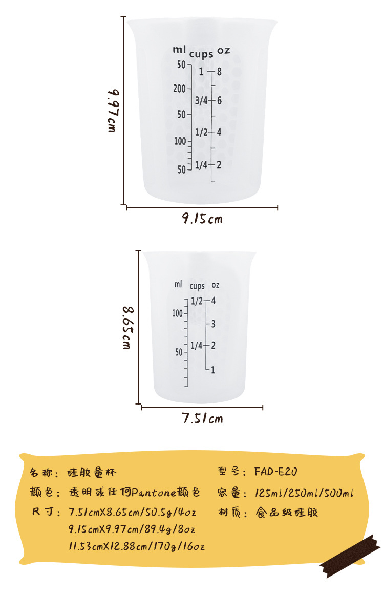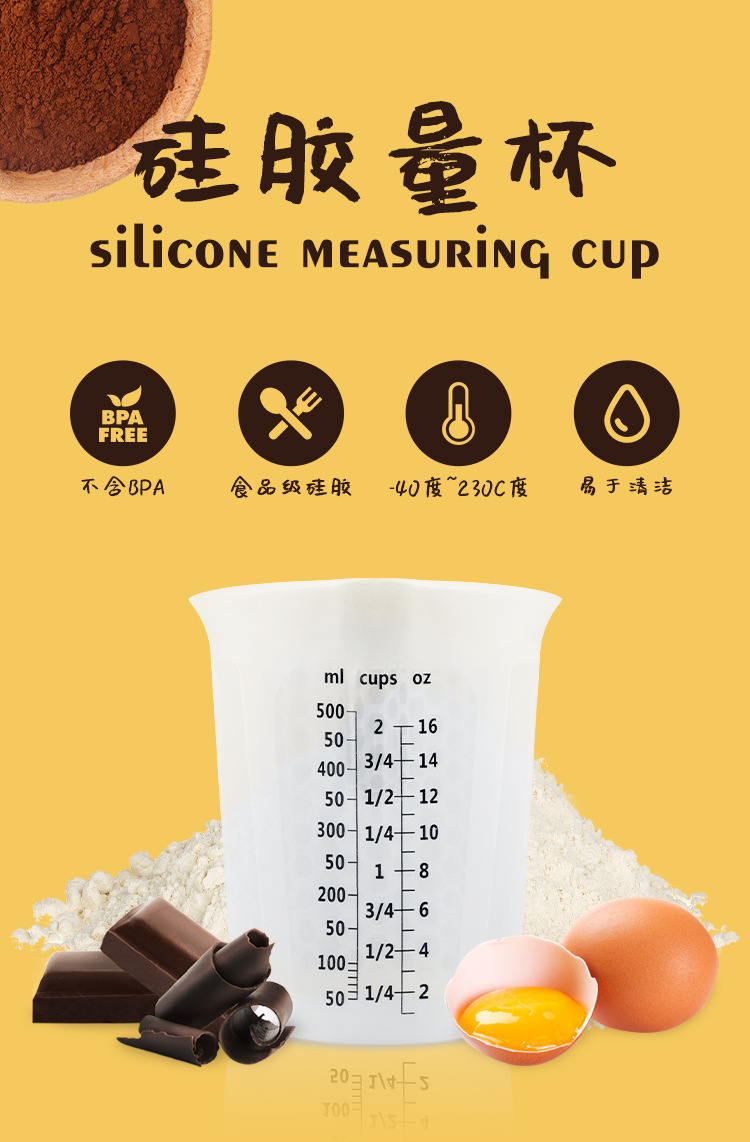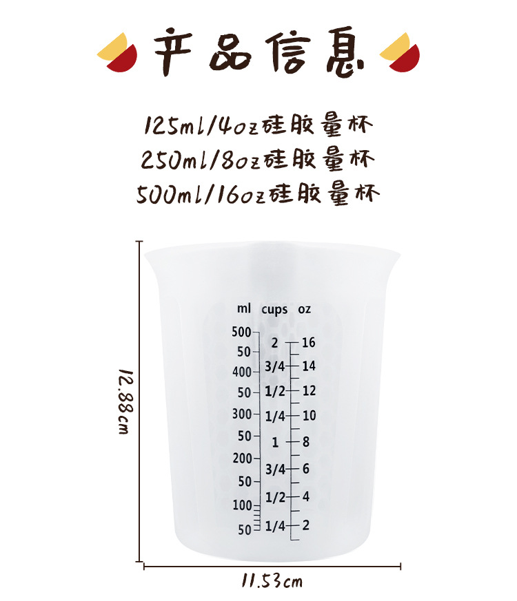 측정 컵 3 피스 주방 우유 가루 반투명 이중 규모 꿀벌 구멍 측정 컵 규모 실리콘 실험실 측정 컵