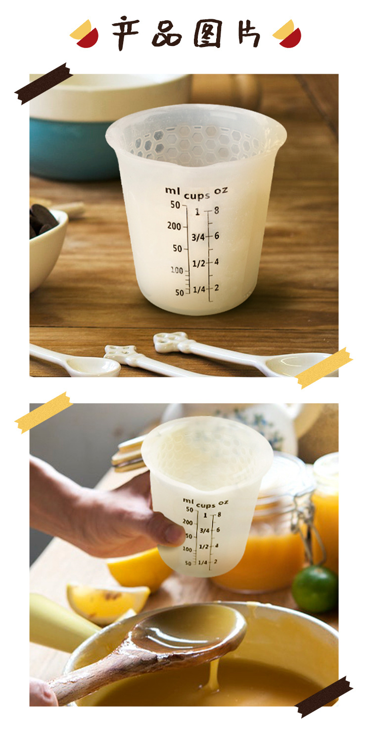 측정 컵 3 피스 주방 우유 가루 반투명 이중 규모 꿀벌 구멍 측정 컵 규모 실리콘 실험실 측정 컵스토어 가기