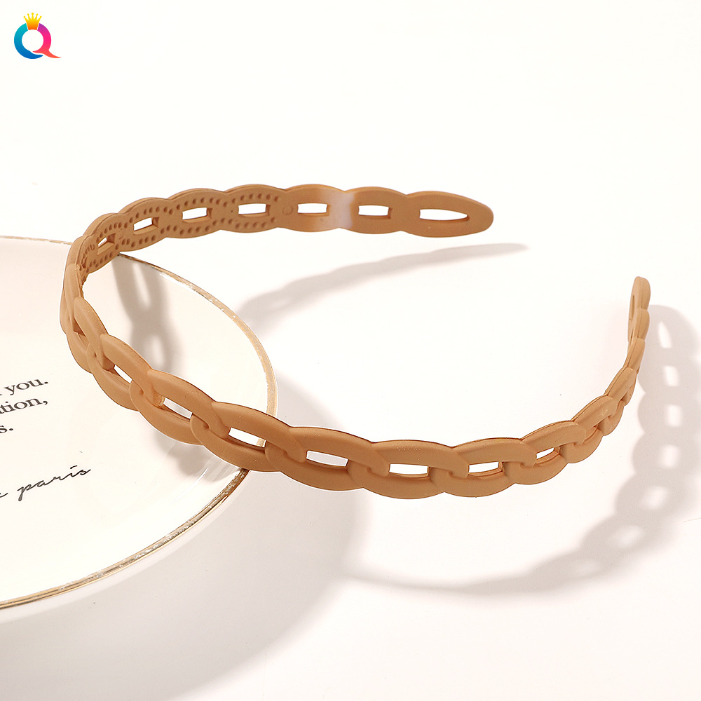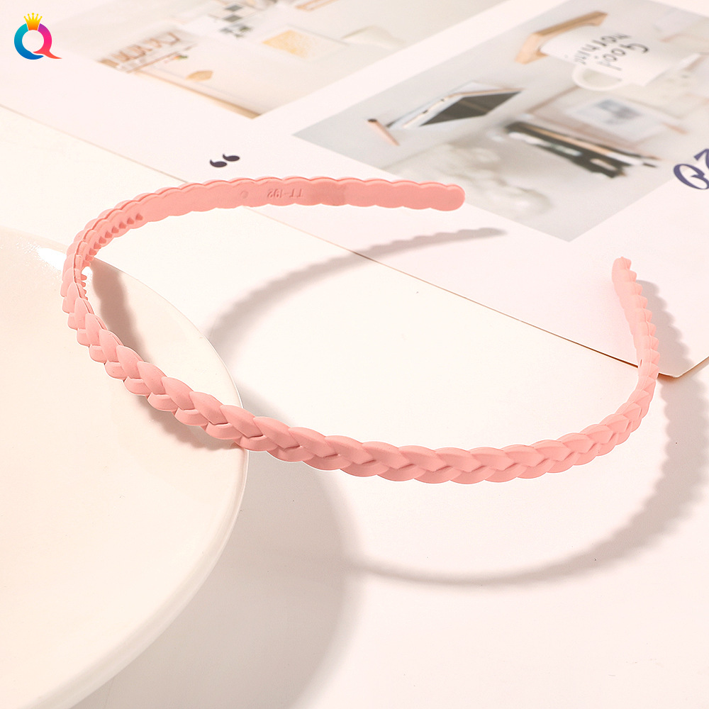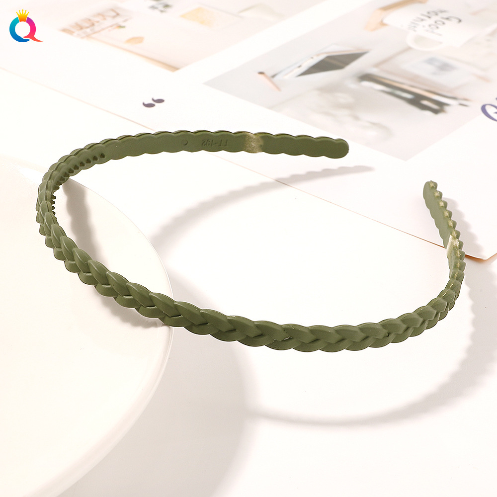 Qiyue 한국식 헤어 밴드 헤어 액세서리 단색 웨이브 트위스트 좁은 측면 수지 머리띠 여성용 모든 매치 프레스 헤어 번들 모자