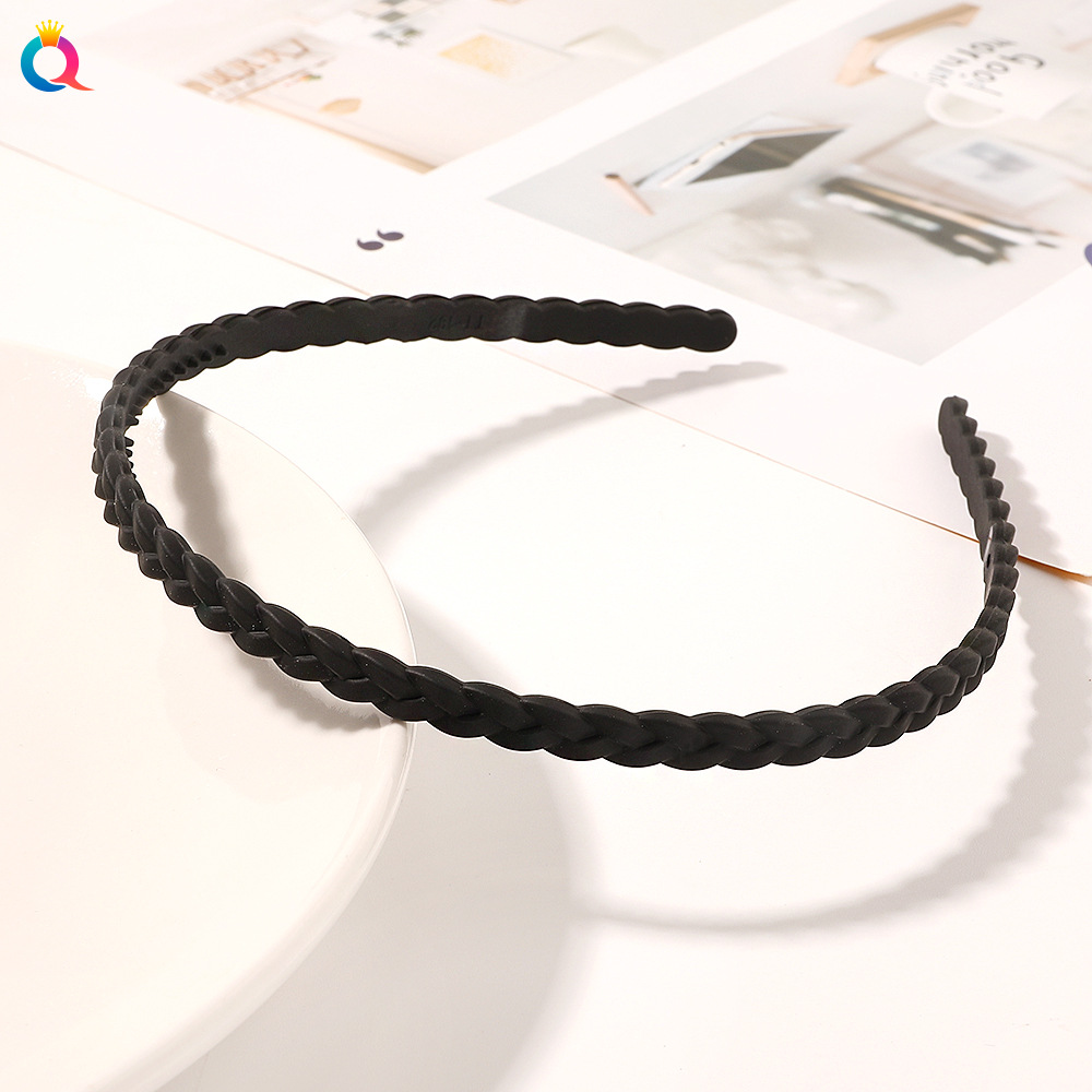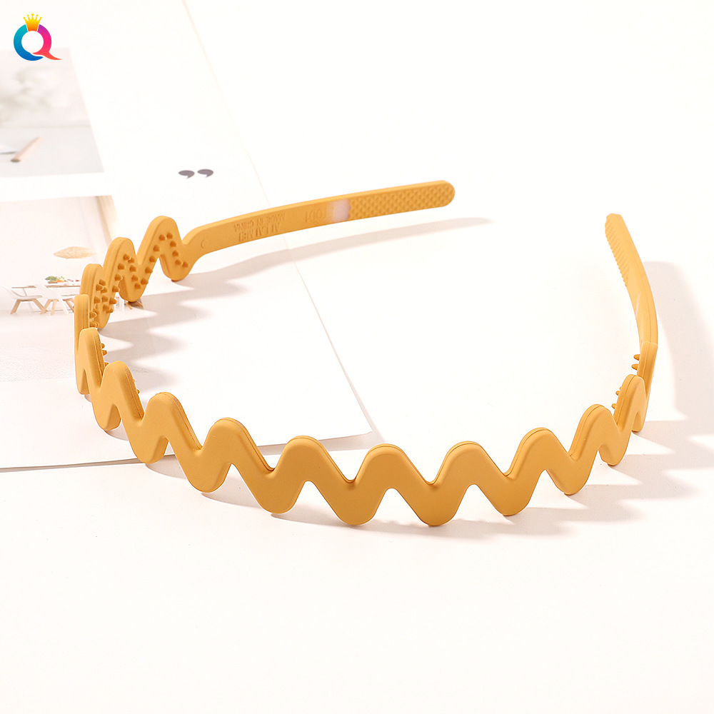Qiyue 한국식 헤어 밴드 헤어 액세서리 단색 웨이브 트위스트 좁은 측면 수지 머리띠 여성용 모든 매치 프레스 헤어 번들 모자스토어 가기