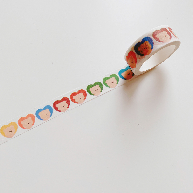 [5 m] 한국 만화 퍼지 베어 사랑과 종이 테이프 핸드 계정 스티커 씰링 스티커 심플 시리즈 문구스토어 가기