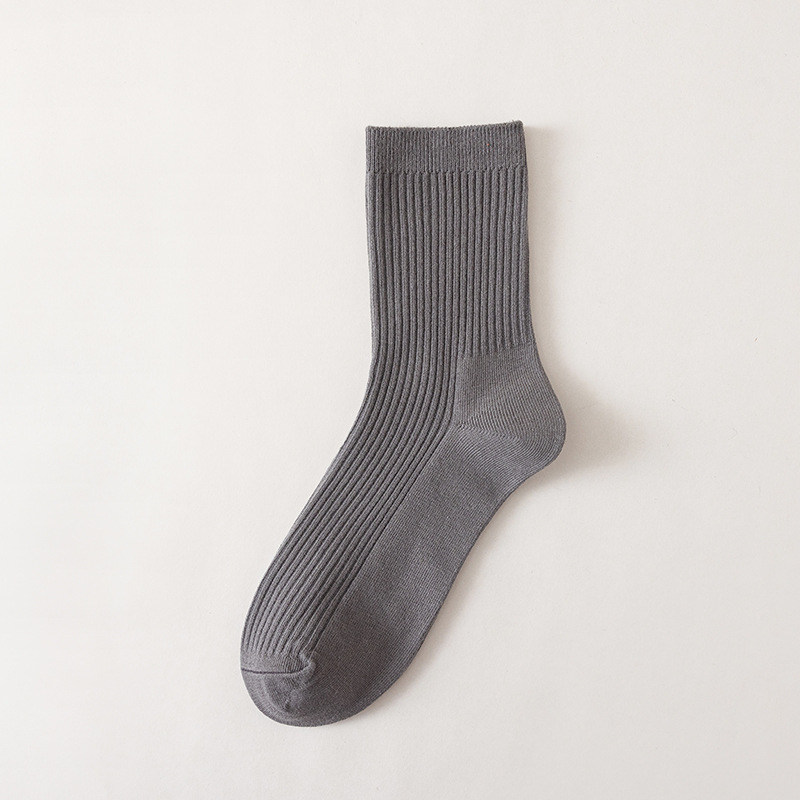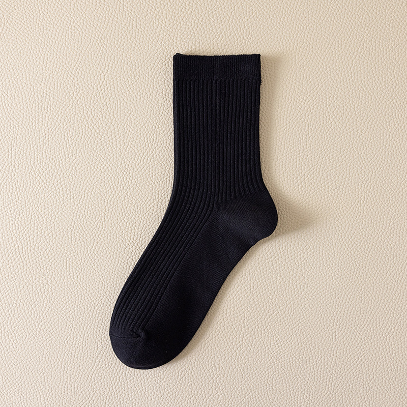 더블 니들 양말 남성용 종아리 중반 양말 여름 솔리드 컬러 면 사계절 가을 겨울 통기성 땀 흡수 및 탈취 솔리드 컬러 비즈니스 양말스토어 가기