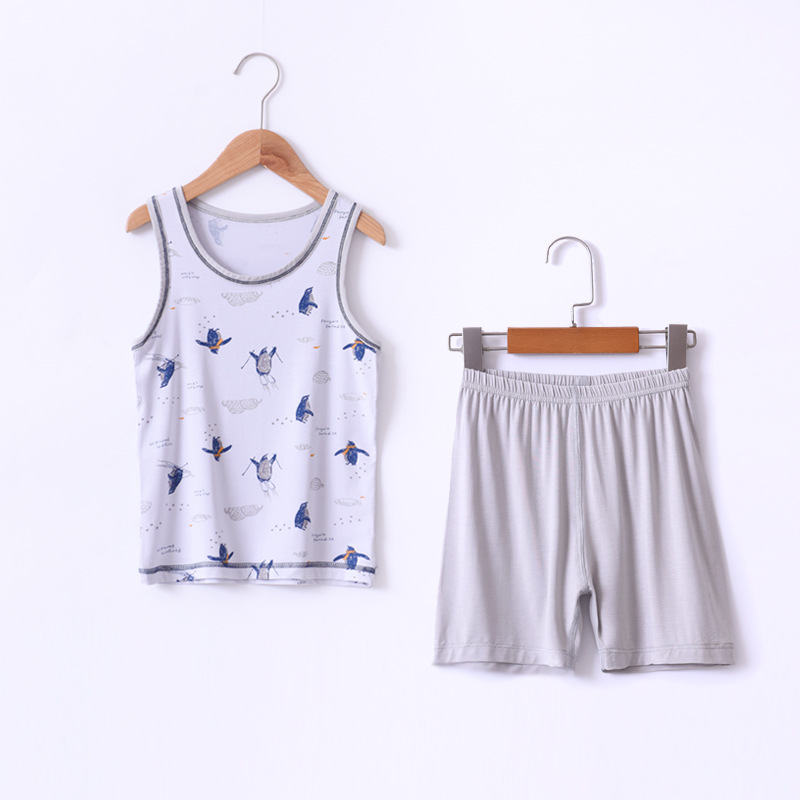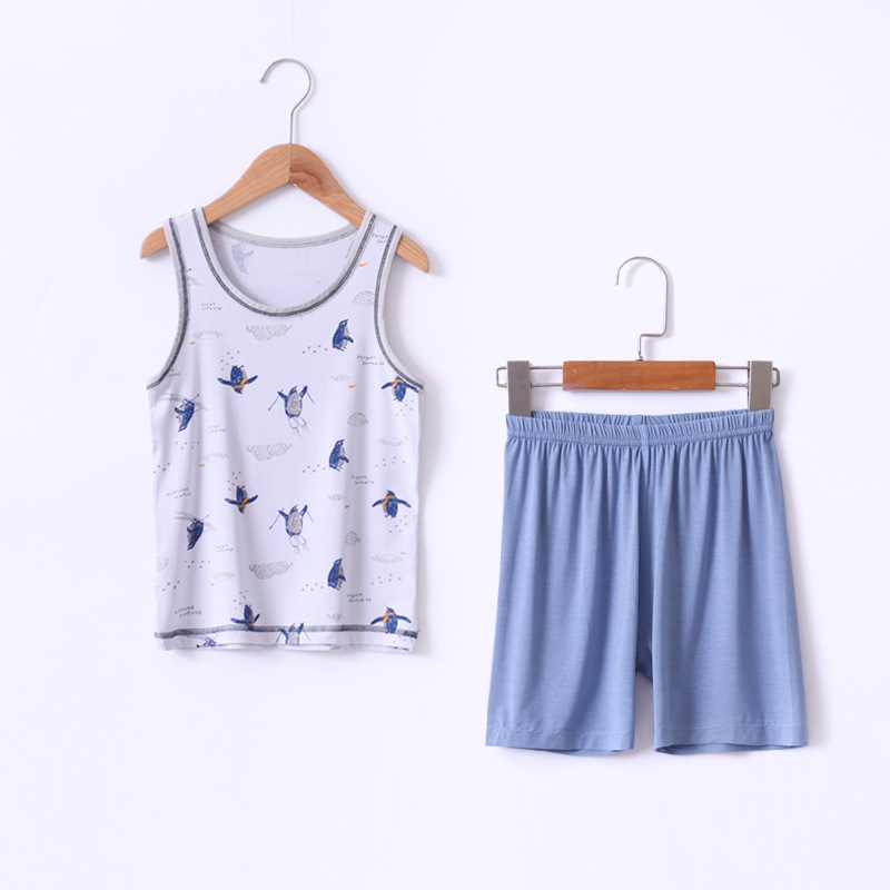 60 모달 어린이 가정 옷 세트 여름 얇은 작은 소년 '에어컨 옷 아기 조끼 잠옷