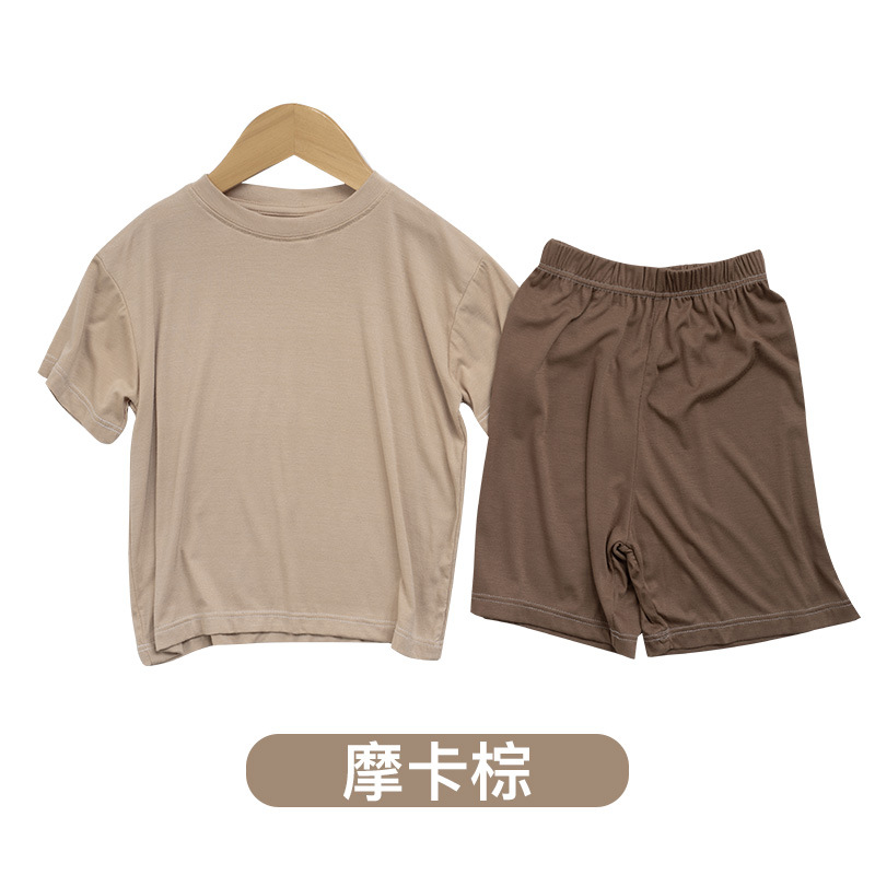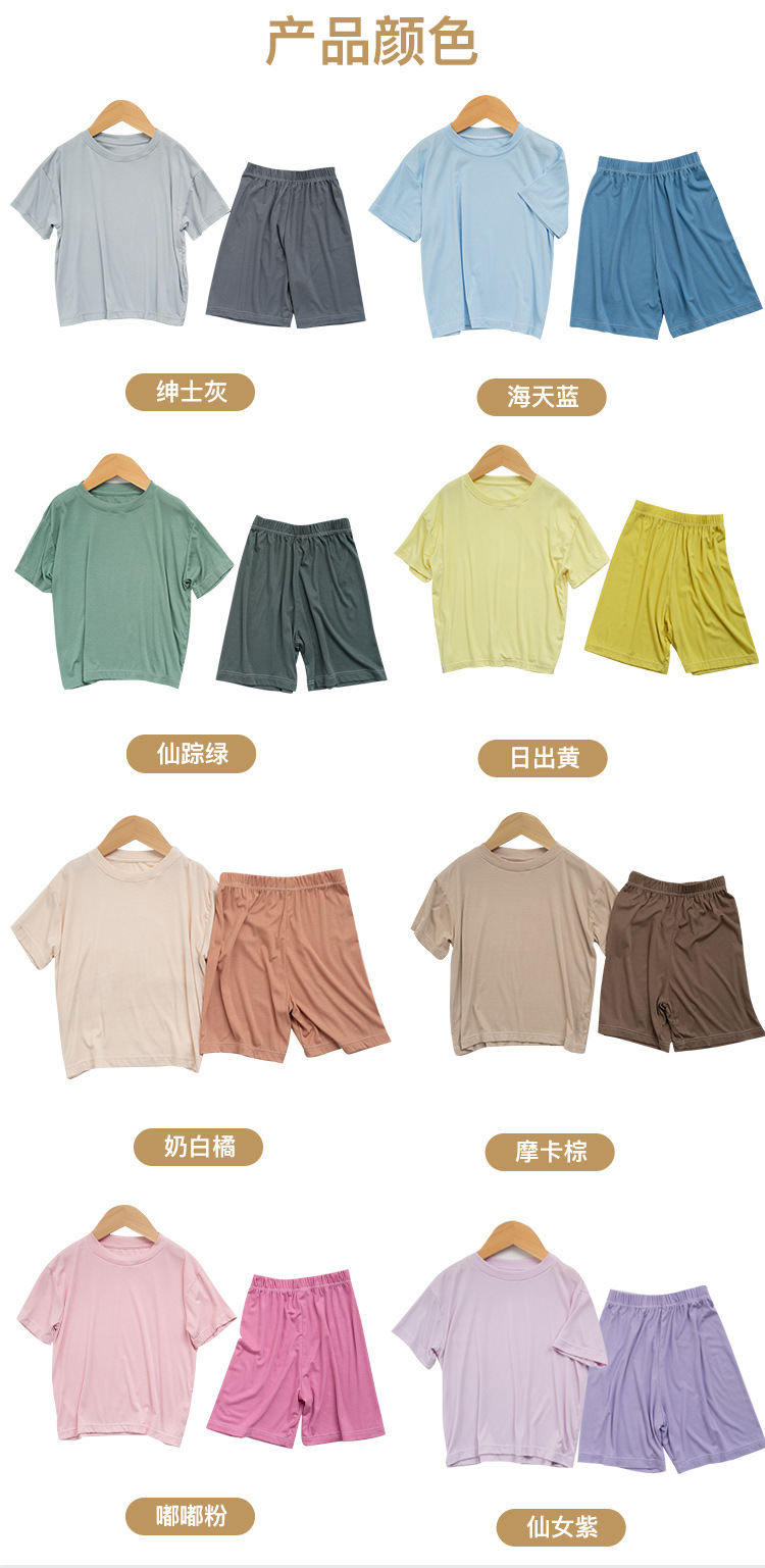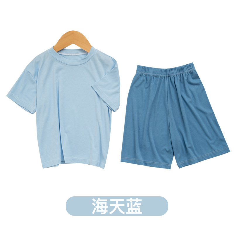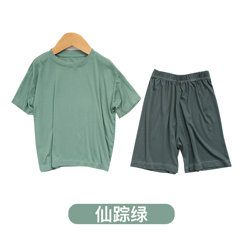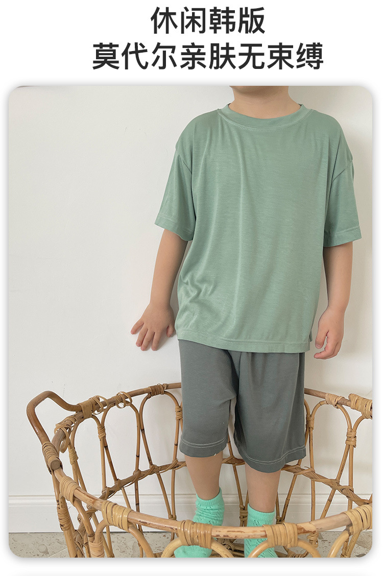어린이 잠옷 여름 클래스 A 모달면 얇은 통기성 소년과 소녀 반팔 가정 의류 세트 중간 어린이 여름