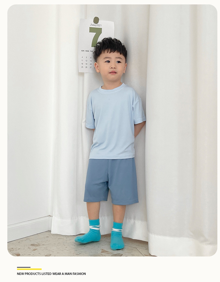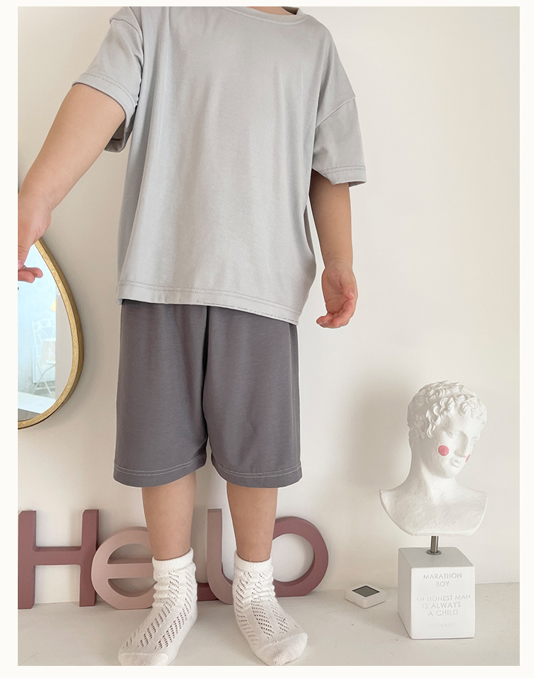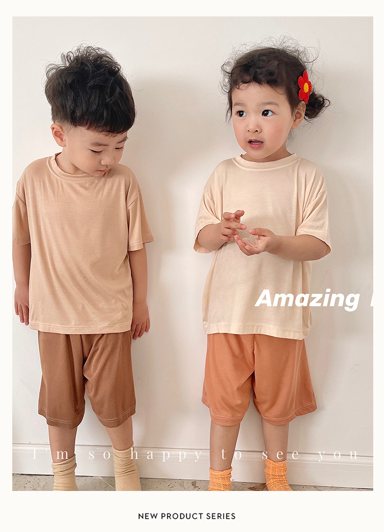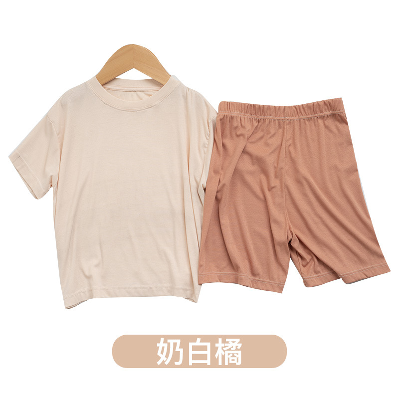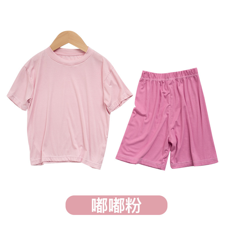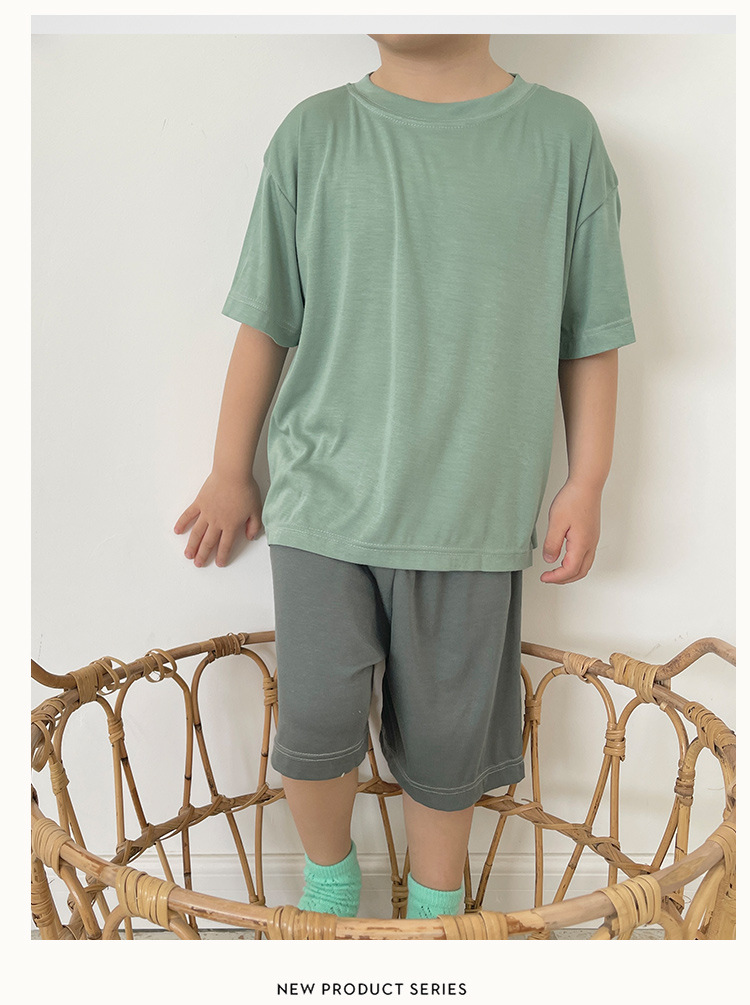 어린이 잠옷 여름 클래스 A 모달면 얇은 통기성 소년과 소녀 반팔 가정 의류 세트 중간 어린이 여름